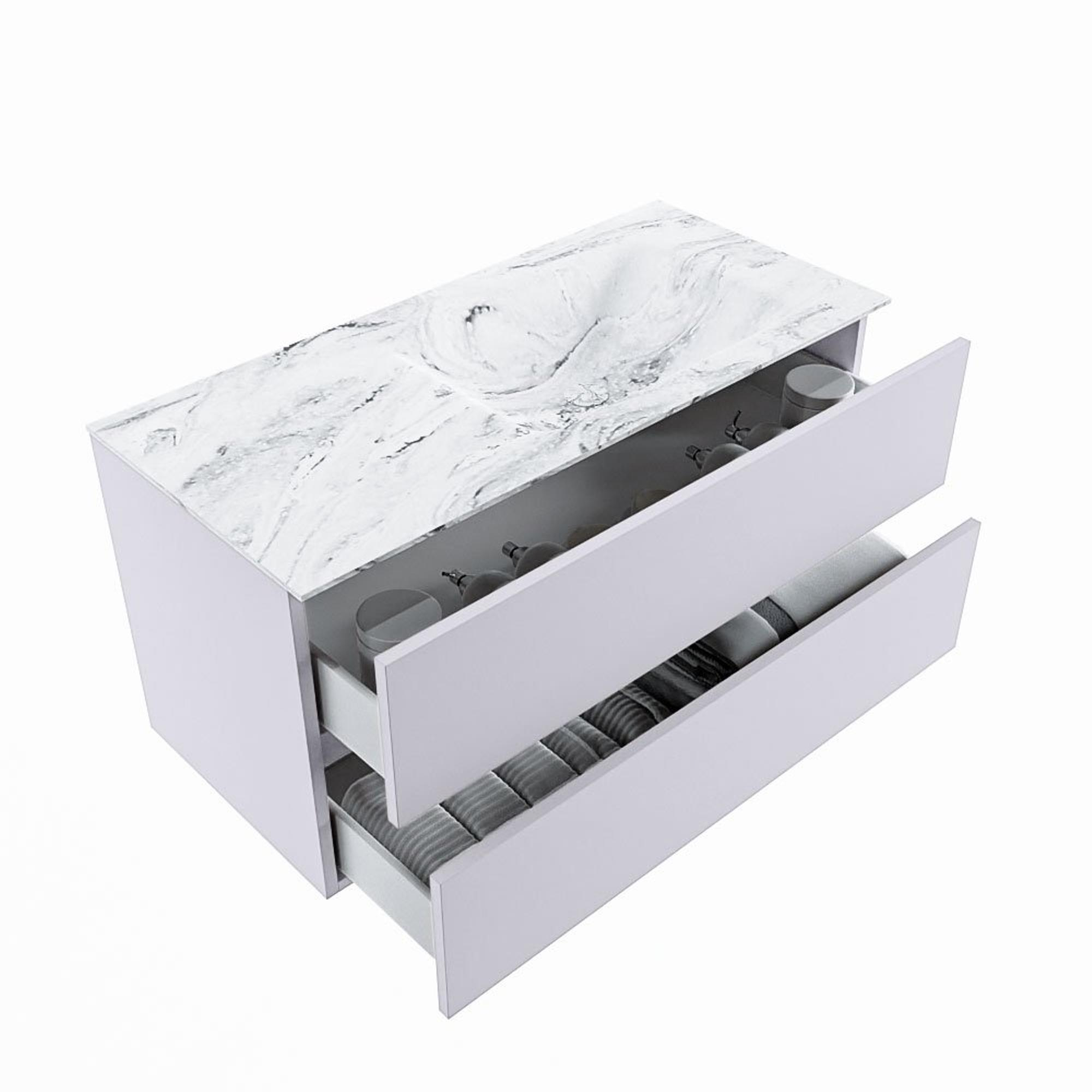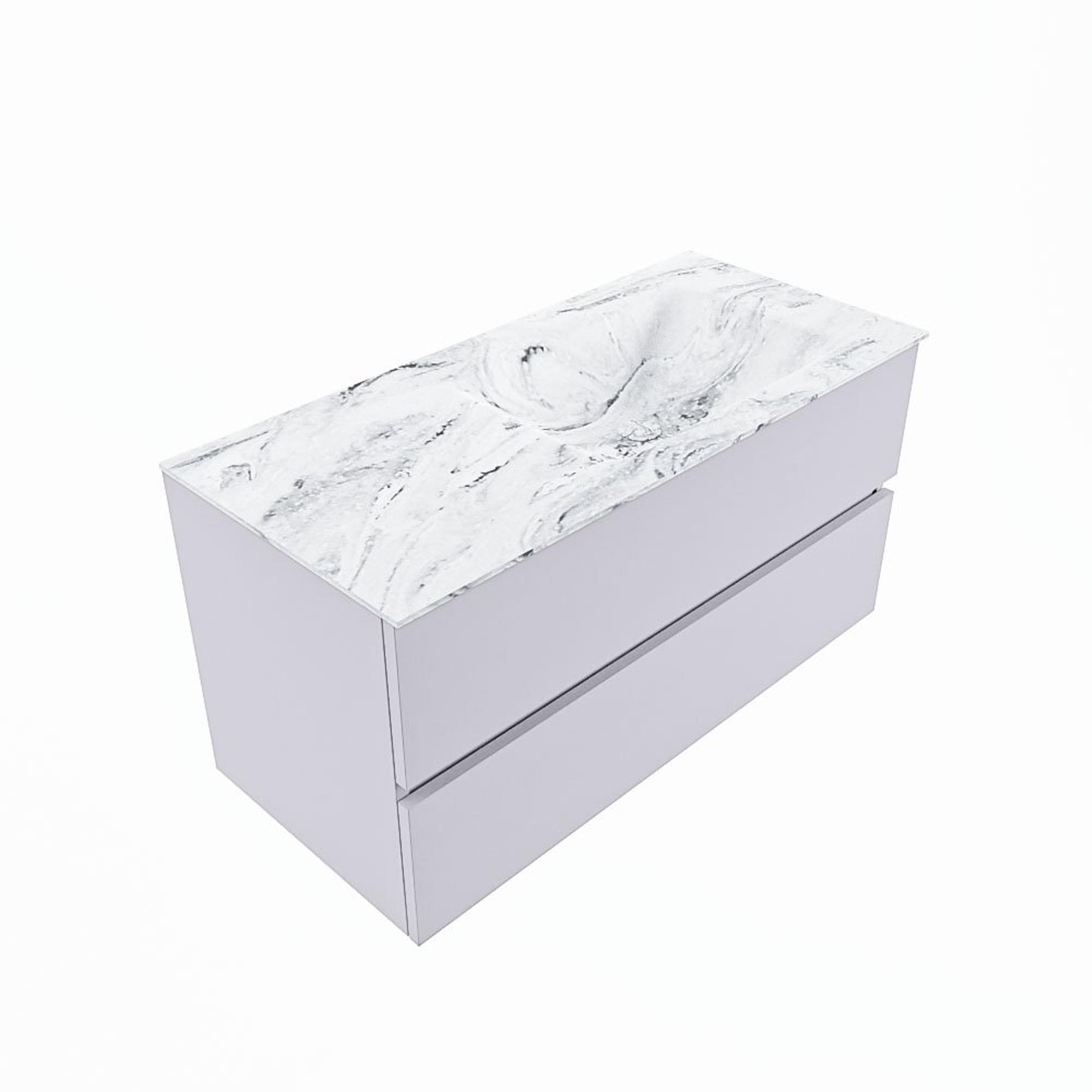 MONDIAZ VICA-DLUX Badkamermeubelset - 100cm - onderkast cale- 2 lades - inbouw wastafel cloud rechts - zonder kraangaten - 60cm hoge versie - glace