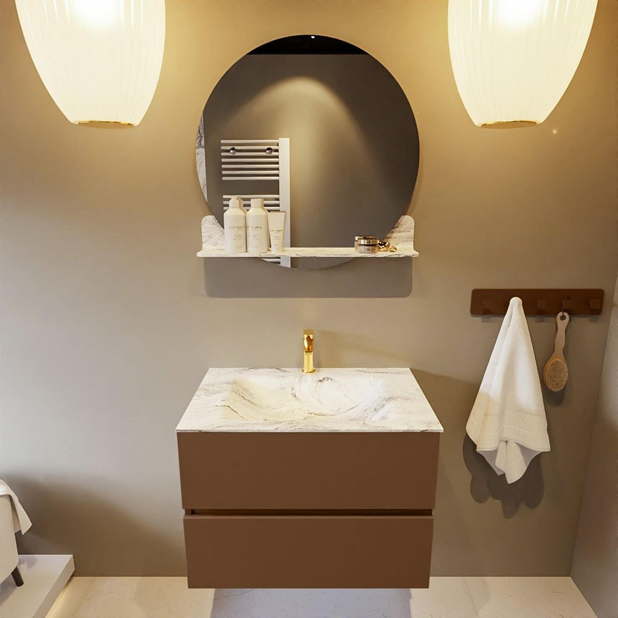 MONDIAZ VICA-DLUX Badkamermeubelset - 70cm - onderkast rust- 2 lades - inbouw wastafel cloud midden - 1 kraangat - 60cm hoge versie - glace