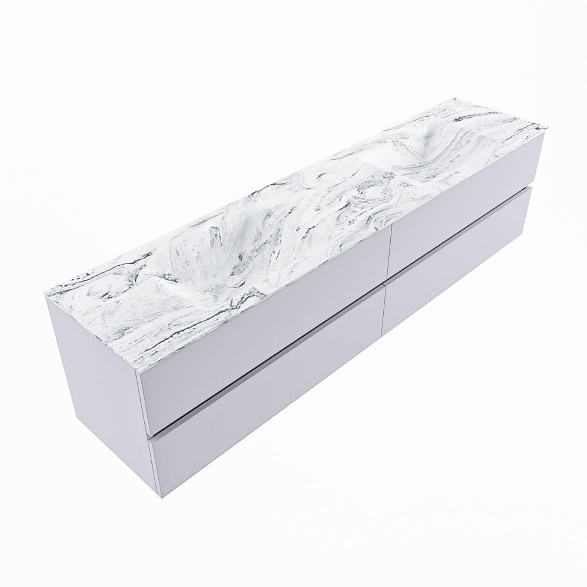 MONDIAZ VICA-DLUX Badkamermeubelset - 200cm - onderkast cale - 4 lades - inbouw wastafel cloud dubbel - 2 kraangaten - 60cm hoge versie - glace