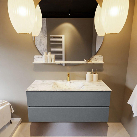 MONDIAZ VICA-DLUX Badkamermeubelset - 120cm - onderkast plata- 2 lades - inbouw wastafel cloud midden - 1 kraangat - 60cm hoge versie - glace