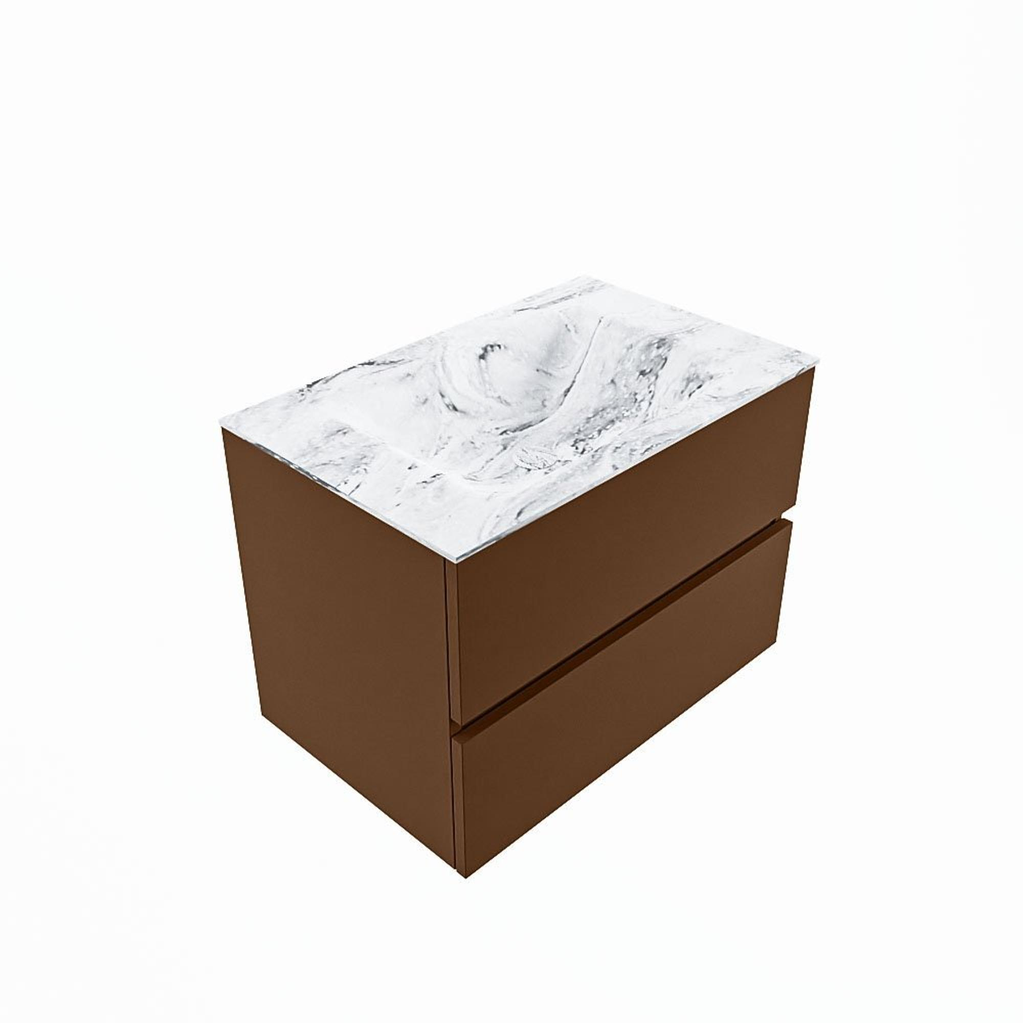 MONDIAZ VICA-DLUX Badkamermeubelset - 70cm - onderkast rust- 2 lades - inbouw wastafel cloud midden - zonder kraangaten - 60cm hoge versie - glace