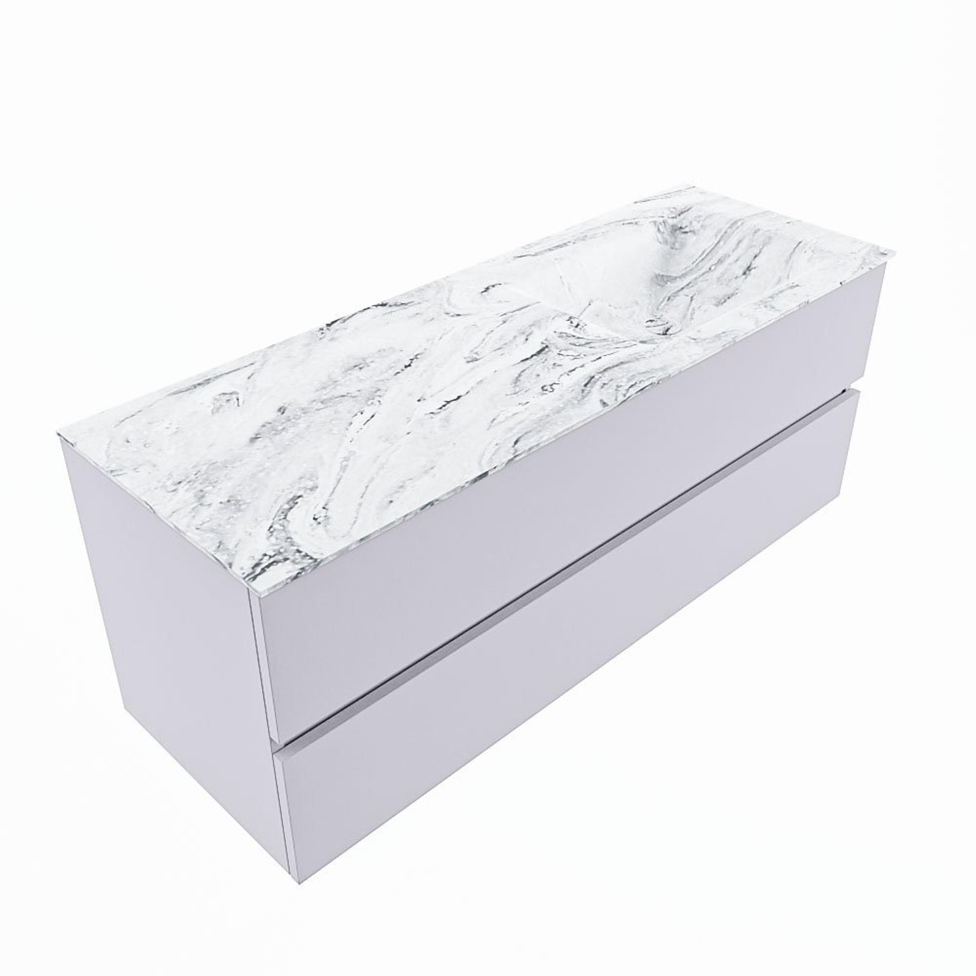 MONDIAZ VICA-DLUX Badkamermeubelset - 130cm - onderkast cale- 2 lades - inbouw wastafel cloud rechts - zonder kraangaten - 60cm hoge versie - glace