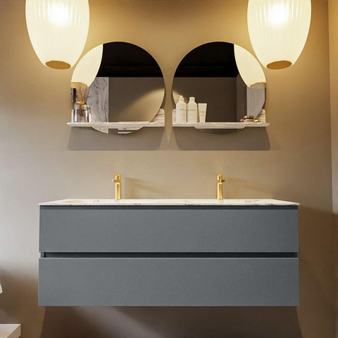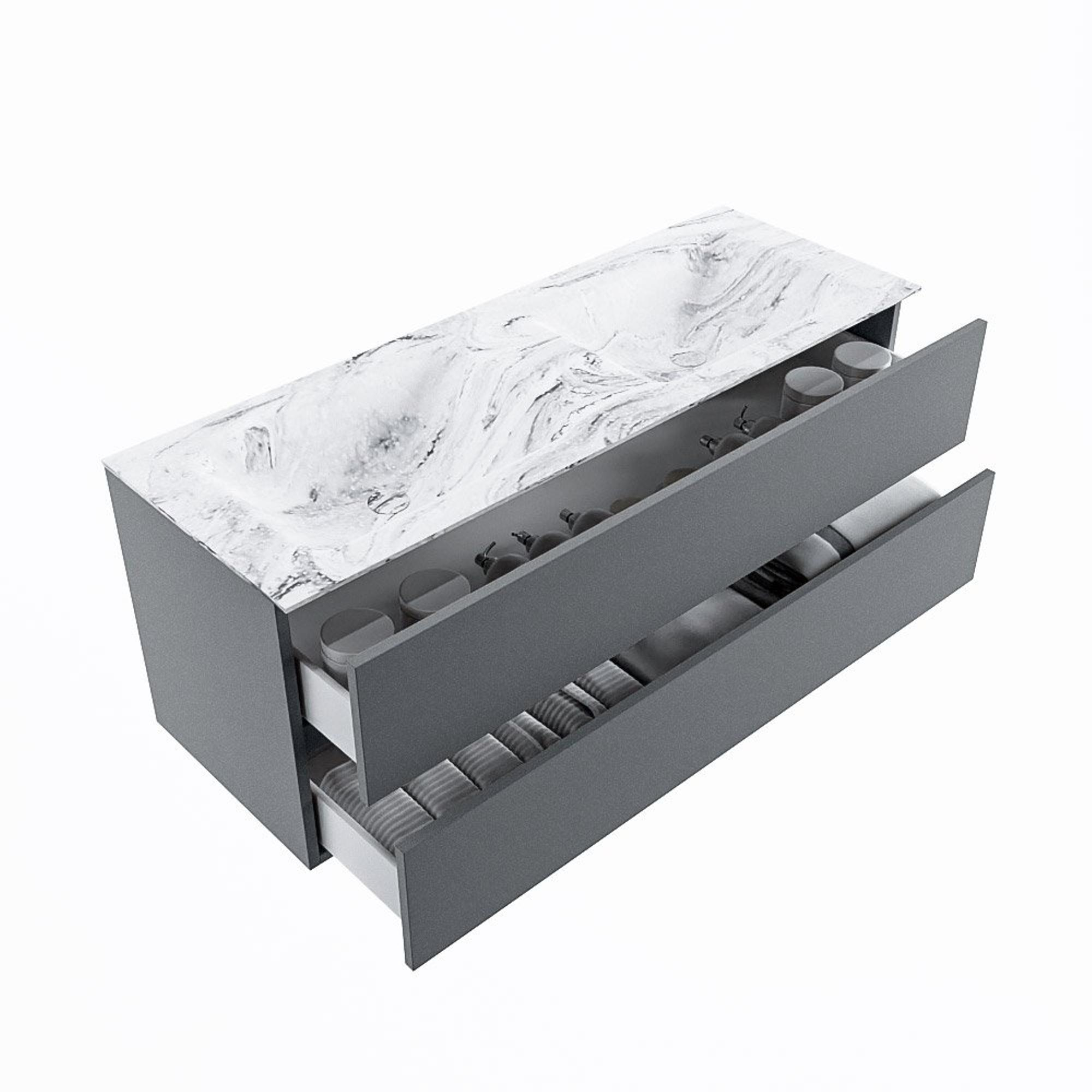 MONDIAZ VICA-DLUX Badkamermeubelset - 130cm - onderkast plata- 2 lades - inbouw wastafel cloud dubbel - 2 kraangaten - 60cm hoge versie - glace