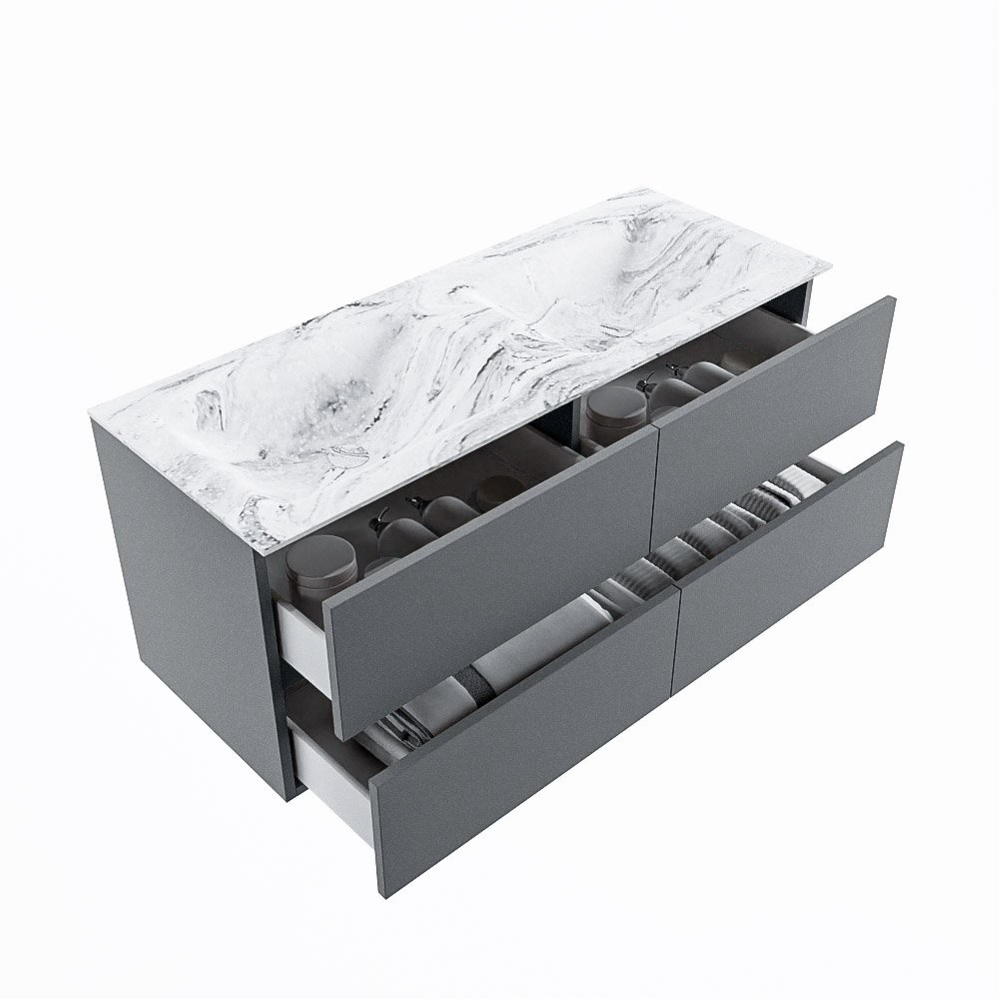MONDIAZ VICA-DLUX Badkamermeubelset - 120cm - onderkast plata - 4 lades - inbouw wastafel cloud dubbel - 2 kraangaten - 60cm hoge versie - glace