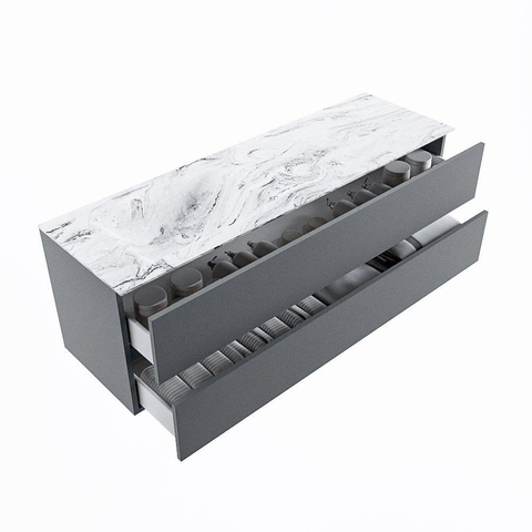 De buitengewone mooie badmeubel set VICA DLUX is een schitterend pronkstuk in uw badkamer. De gemarmerde Solid surface wastafel van CORIAN heeft een fraaie en tijdloze uitstraling. Door de zachte en natuurlijke vorm van de wastafel, gecombineerd met de tijdloze en prachtige badmeubel onderkast past de VICA-DLUX goed bij de diverse stijlen badkamers. Om uw badkamer compleet te af te stijlen hebben wij ook de nissen en spiegelhouders in dezelfde kleur als de wastafel. Zoals de Mondiaz nissen en spiegel planchetten. De serie VICA DLUX bestaat uit de 2 of 4 laden onderkast VICA gecombineerd met een CORIAN Solid surface wastafel met marmer structuur. De Solid surface CORIAN wastafel is in 5 marmer looks verkrijgbaar. Met deze badkamermeubel set heeft u wel die mooie marmeren uitstraling maar tevens ook het gemak en de hygiëne van Solid surface. Let op: U ziet bij de XL (60cm) variant de afbeeldingen/video's van de standaard hoogte (50cm)