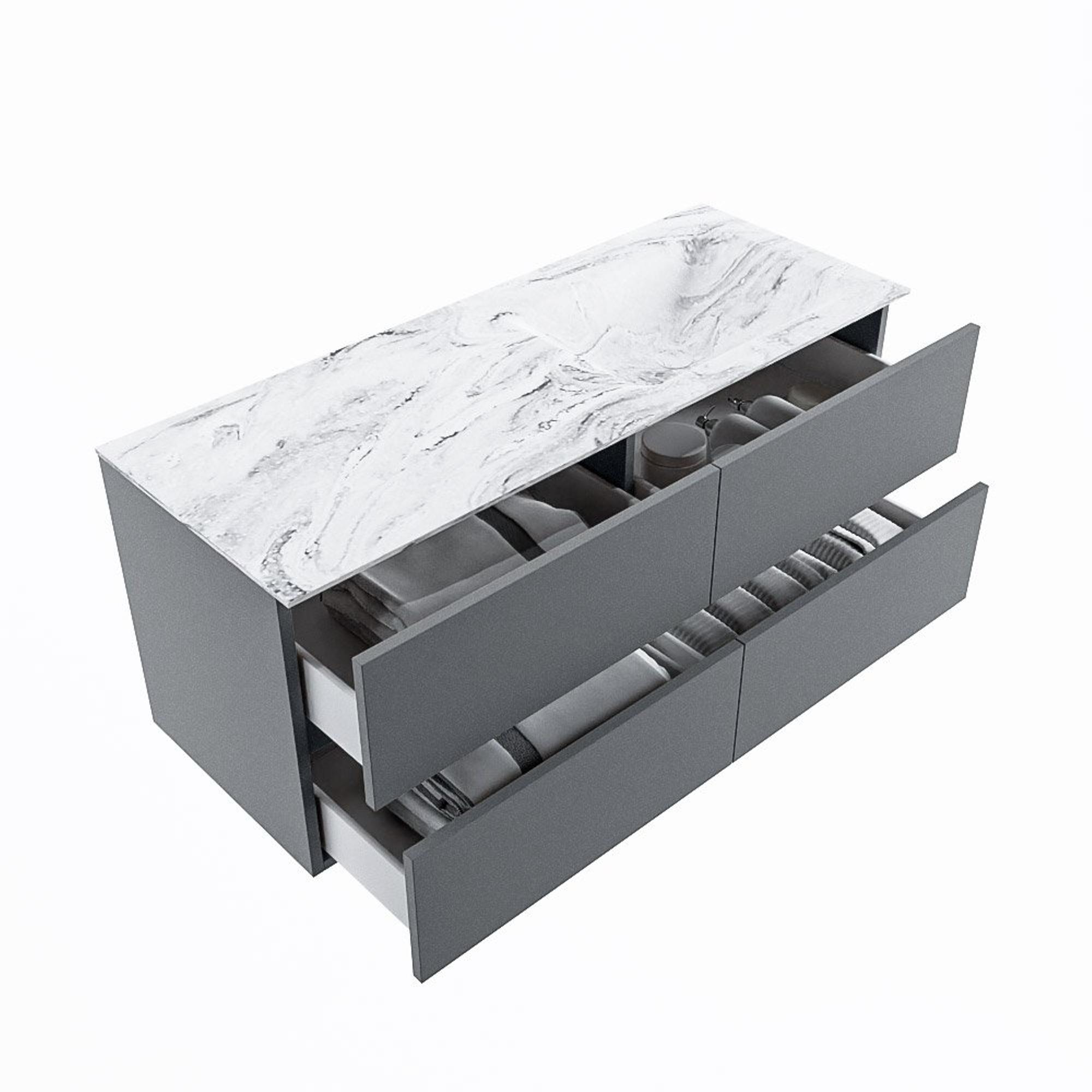 MONDIAZ VICA-DLUX Badkamermeubelset - 120cm - onderkast plata - 4 lades - inbouw wastafel cloud rechts - 1 kraangat - 60cm hoge versie - glace