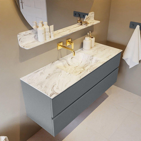 MONDIAZ VICA-DLUX Badkamermeubelset - 130cm - onderkast plata- 2 lades - inbouw wastafel cloud midden - zonder kraangaten - 60cm hoge versie - glace