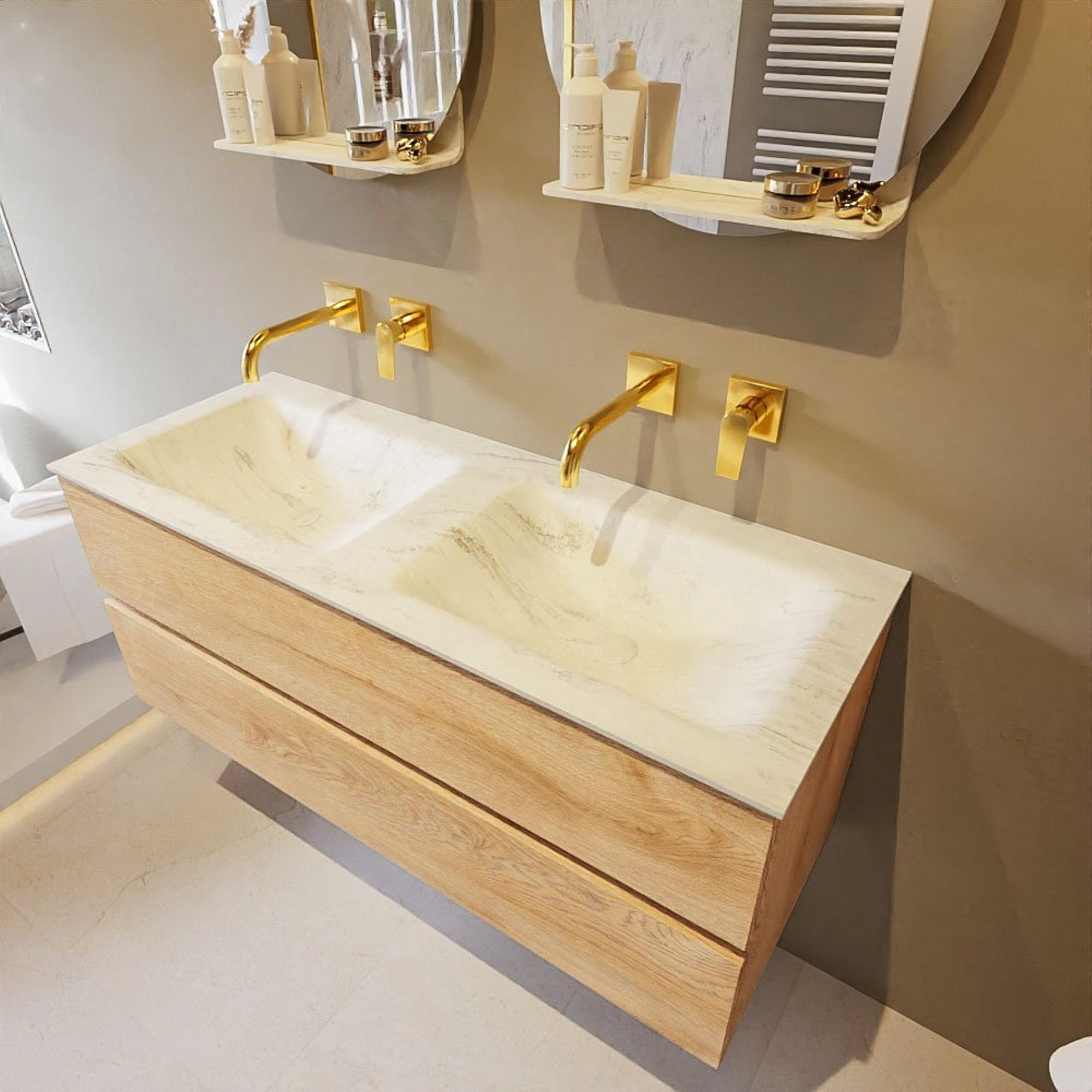 MONDIAZ VICA-DLUX Badkamermeubelset - 120cm - onderkast washed oak - 2 lades - inbouw wastafel cloud dubbel - zonder kraangaten - 60cm hoge versie - opalo
