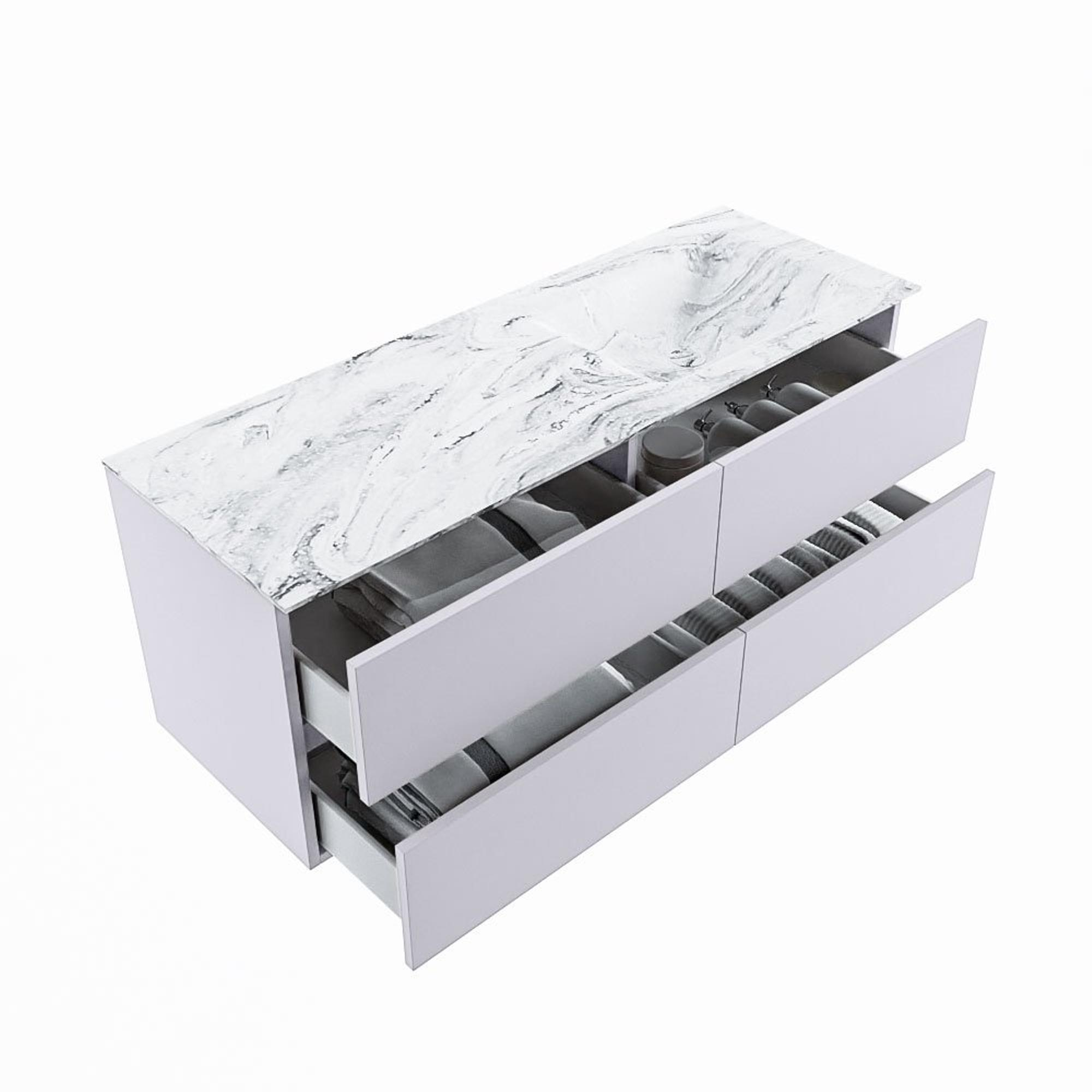 MONDIAZ VICA-DLUX Badkamermeubelset - 130cm - onderkast cale - 4 lades - inbouw wastafel cloud rechts - zonder kraangaten - 60cm hoge versie - glace
