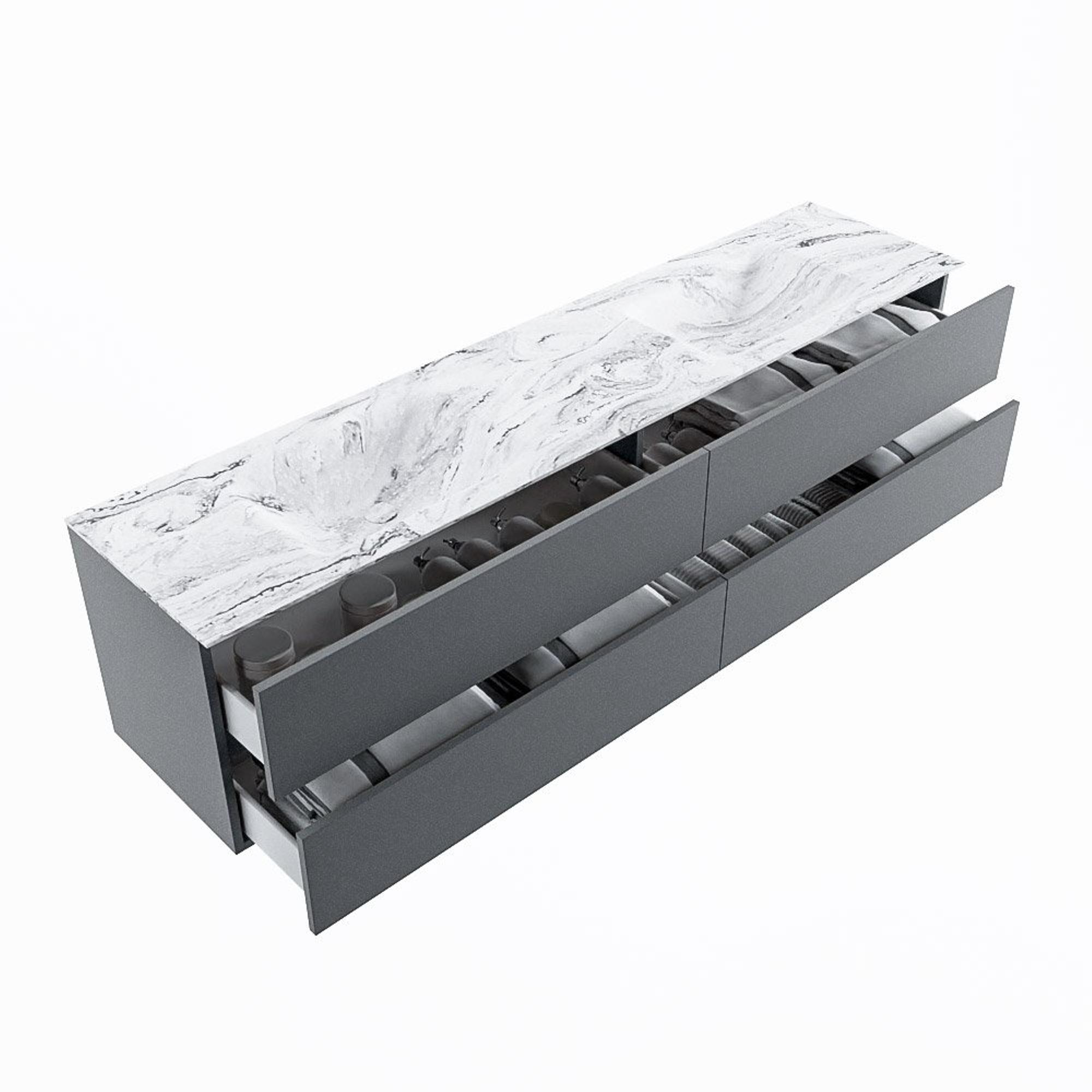 MONDIAZ VICA-DLUX Badkamermeubelset - 200cm - onderkast plata - 4 lades - inbouw wastafel cloud dubbel - zonder kraangaten - 60cm hoge versie - glace