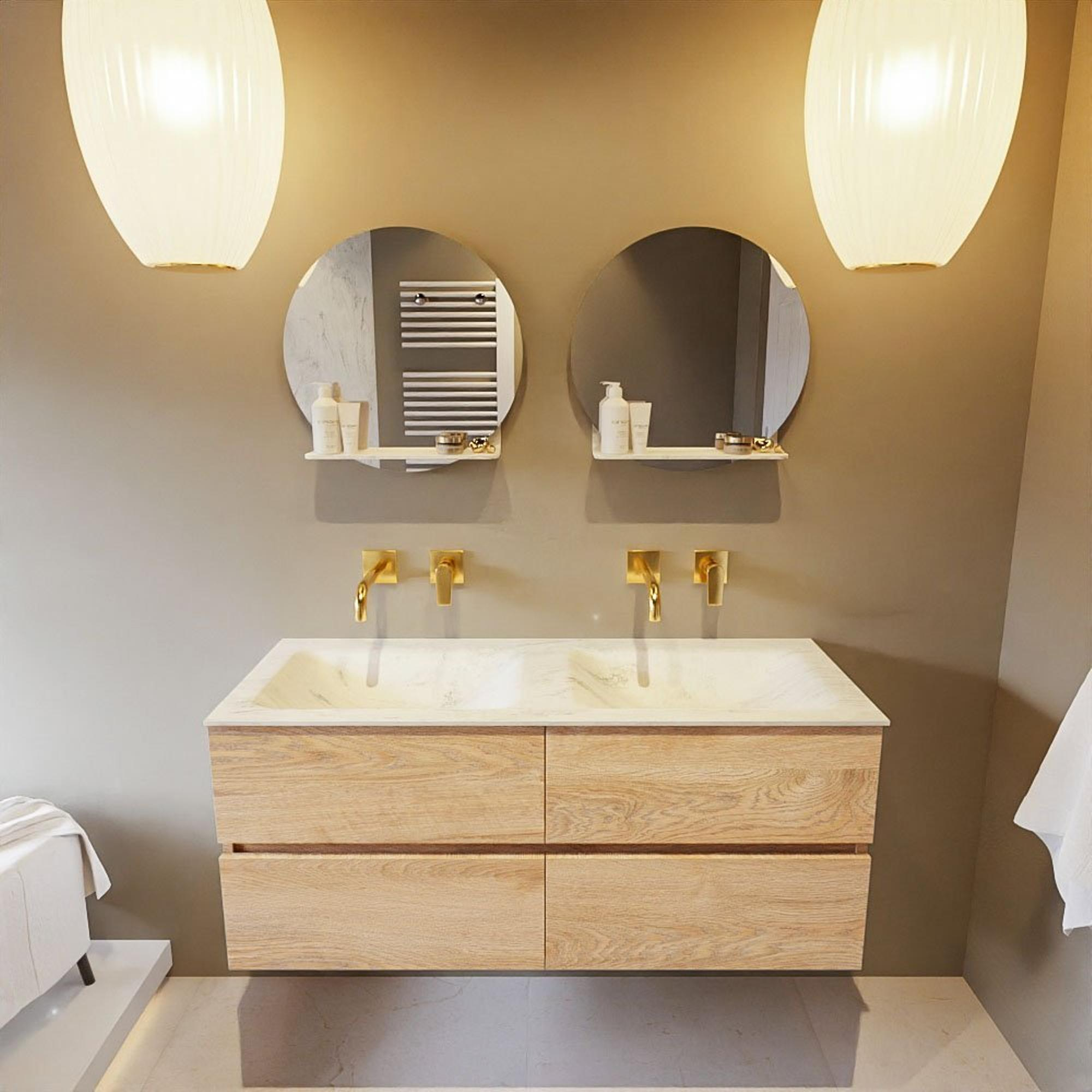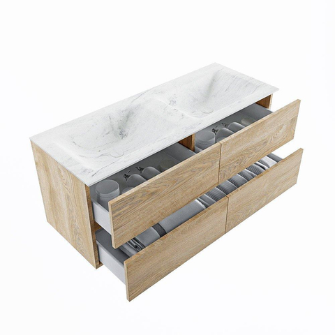 MONDIAZ VICA-DLUX Badkamermeubelset - 120cm - onderkast washed oak - 4 lades - inbouw wastafel cloud dubbel - zonder kraangaten - 60cm hoge versie - opalo