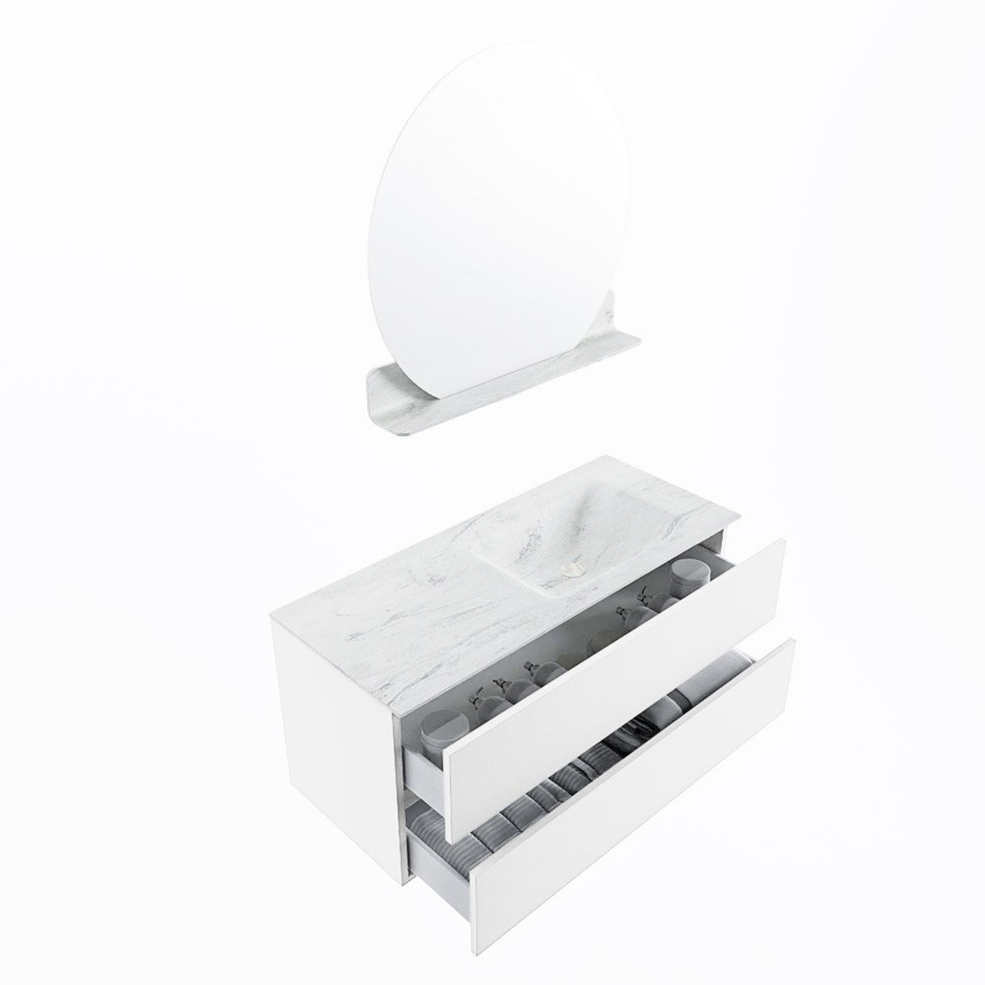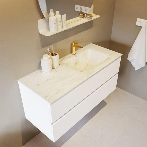 MONDIAZ VICA-DLUX Badkamermeubelset - 110cm - onderkast talc - 2 lades - inbouw wastafel cloud rechts - 1 kraangat - 60cm hoge versie - opalo