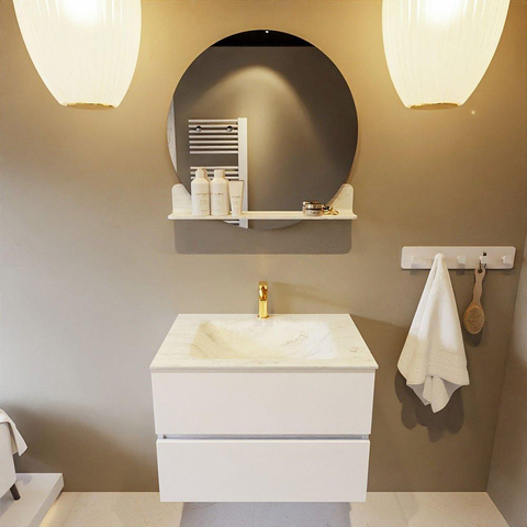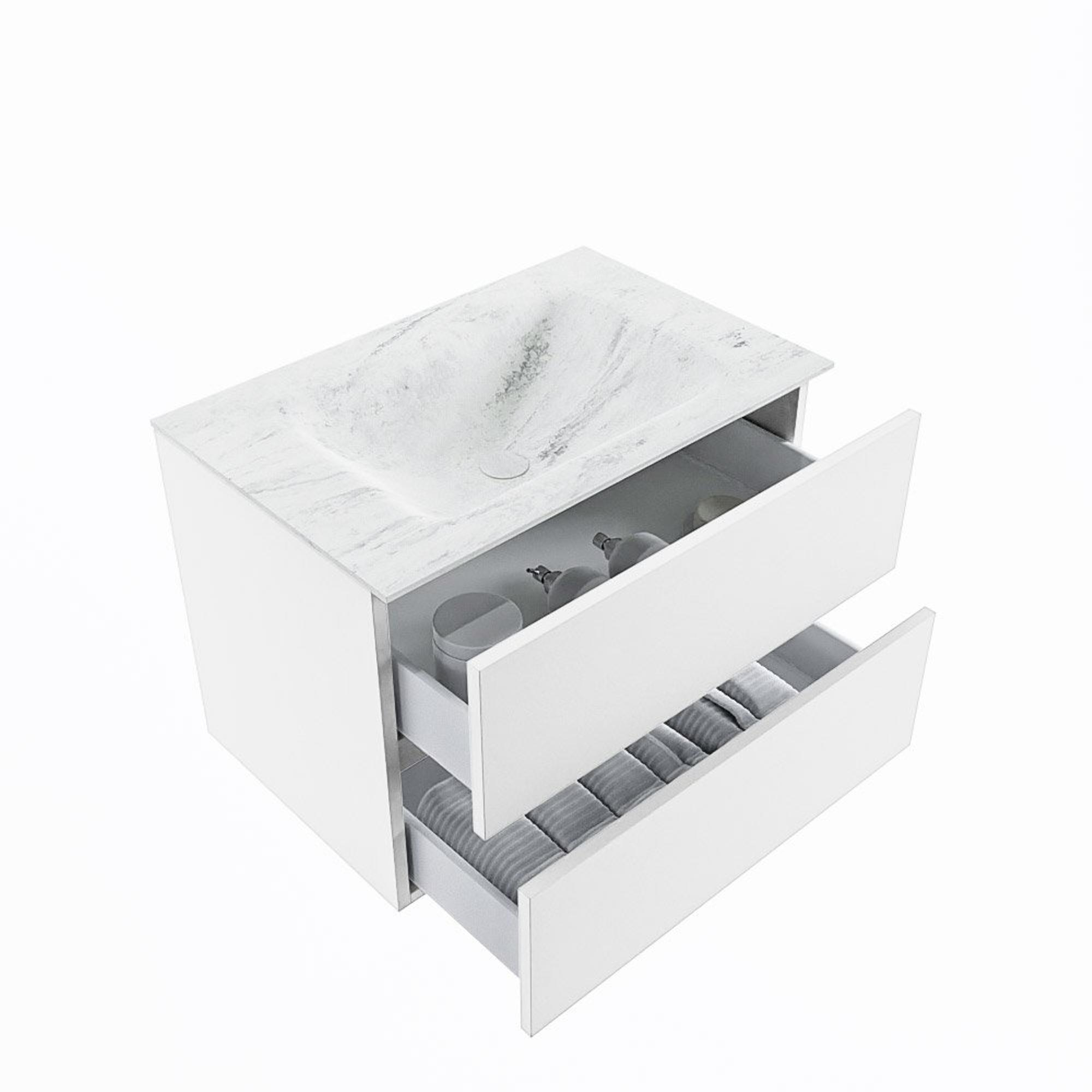 MONDIAZ VICA-DLUX Badkamermeubelset - 70cm - onderkast talc - 2 lades - inbouw wastafel cloud midden - 1 kraangat - 60cm hoge versie - opalo