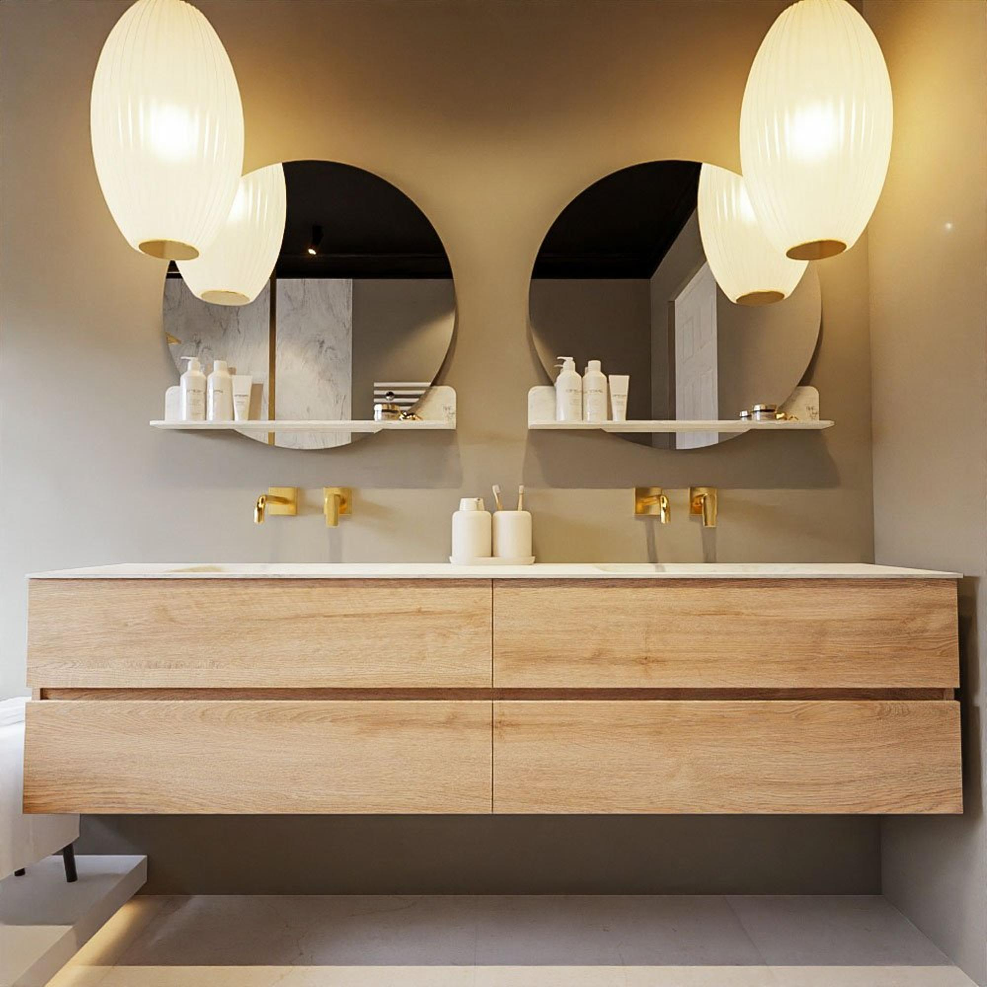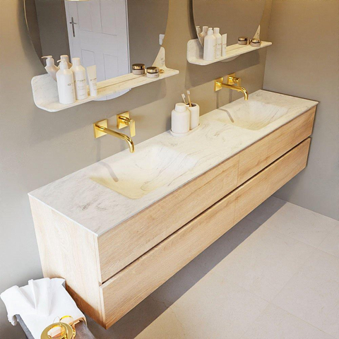 MONDIAZ VICA-DLUX Badkamermeubelset - 200cm - onderkast washed oak - 4 lades - inbouw wastafel cloud dubbel - zonder kraangaten - 60cm hoge versie - opalo