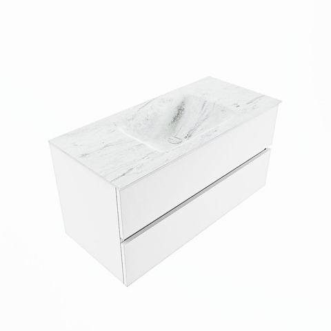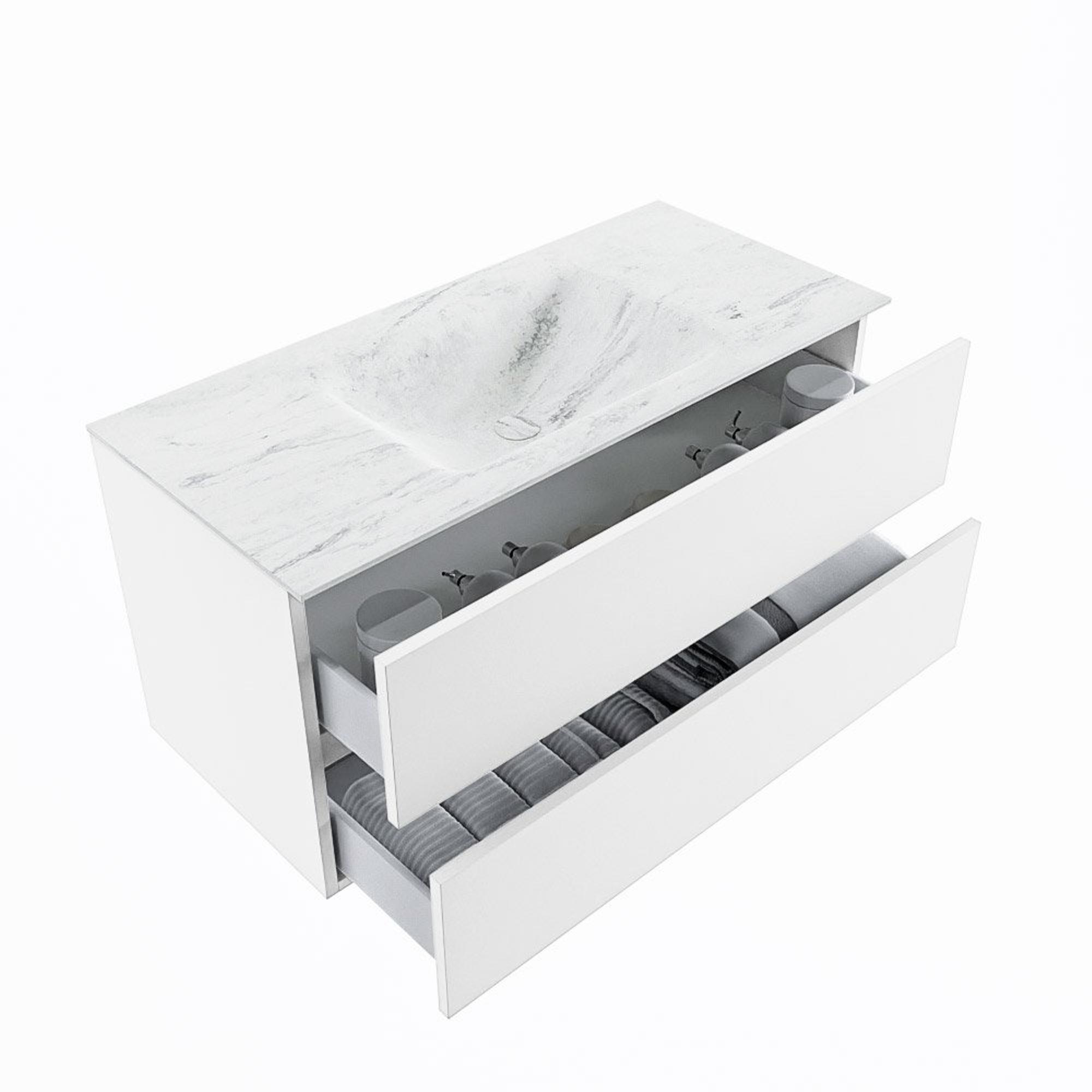 MONDIAZ VICA-DLUX Badkamermeubelset - 100cm - onderkast talc - 2 lades - inbouw wastafel cloud midden - 1 kraangat - 60cm hoge versie - opalo