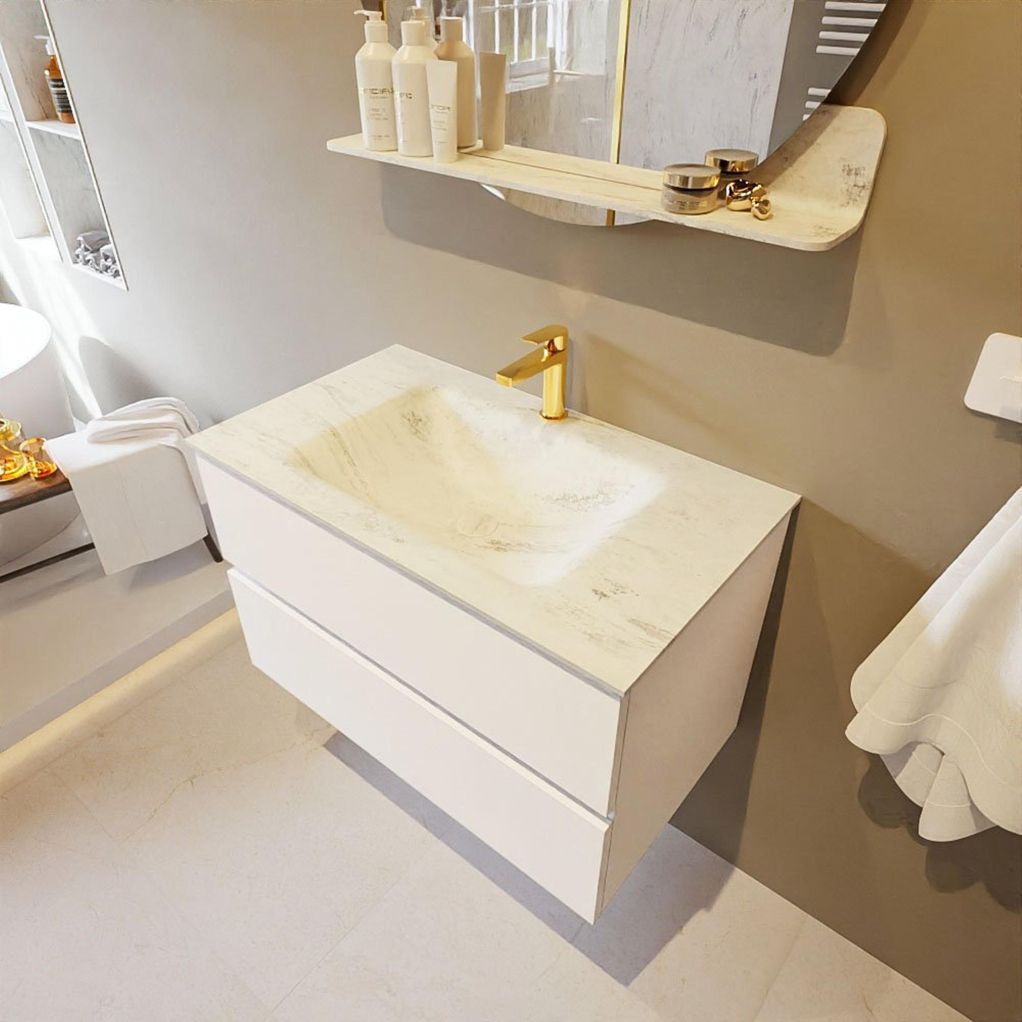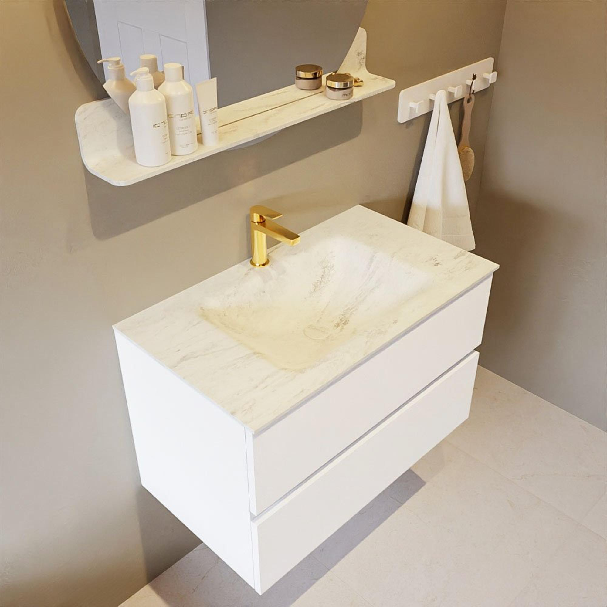 MONDIAZ VICA-DLUX Badkamermeubelset - 80cm - onderkast talc - 2 lades - inbouw wastafel cloud midden - 1 kraangat - 60cm hoge versie - opalo