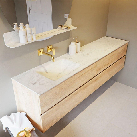 MONDIAZ VICA-DLUX Badkamermeubelset - 200cm - onderkast washed oak - 4 lades - inbouw wastafel cloud links - zonder kraangaten - 60cm hoge versie - opalo