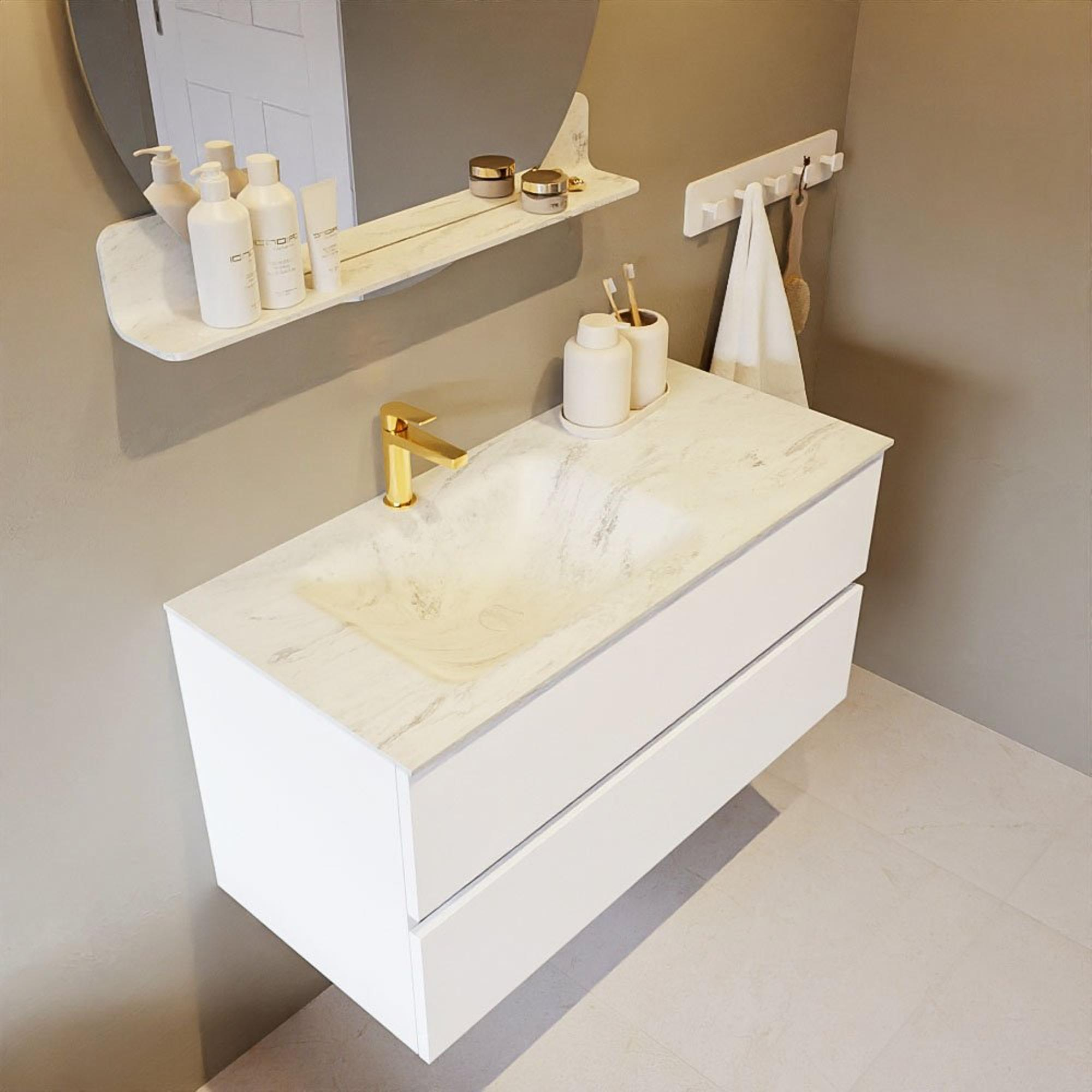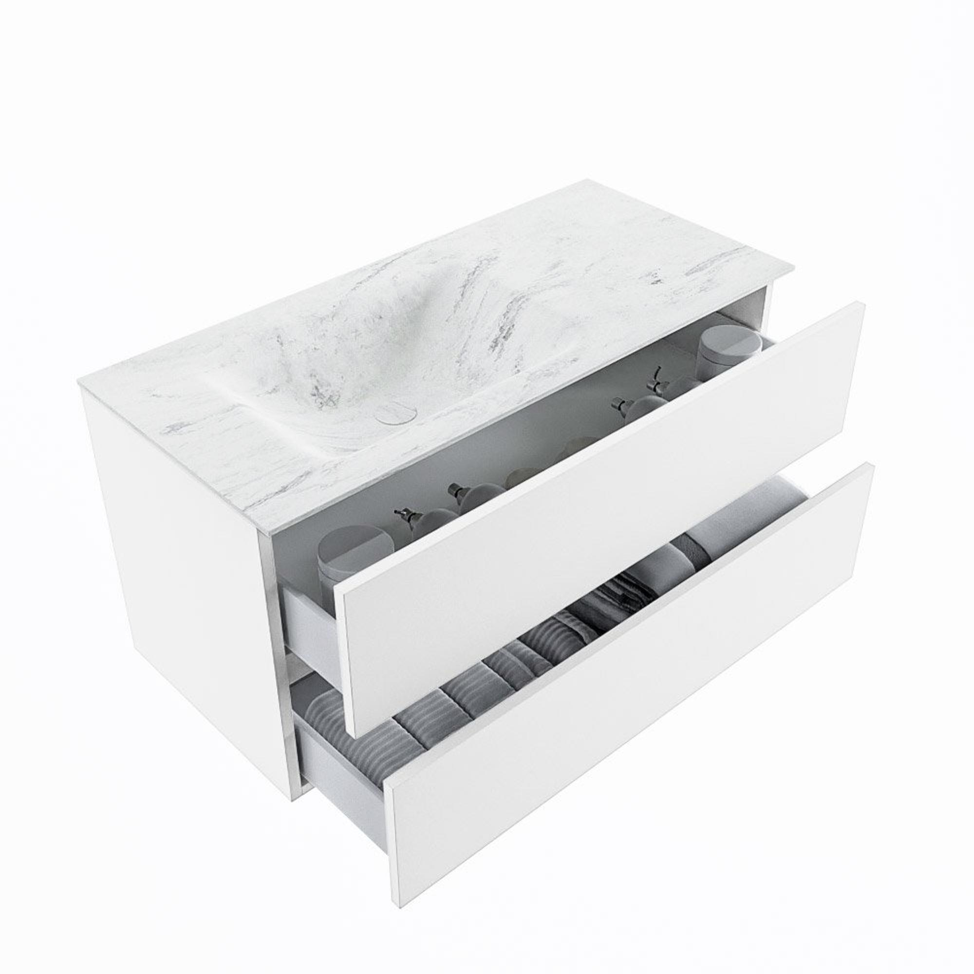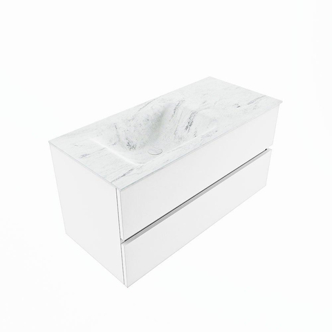 MONDIAZ VICA-DLUX Badkamermeubelset - 100cm - onderkast talc - 2 lades - inbouw wastafel cloud links - 1 kraangat - 60cm hoge versie - opalo