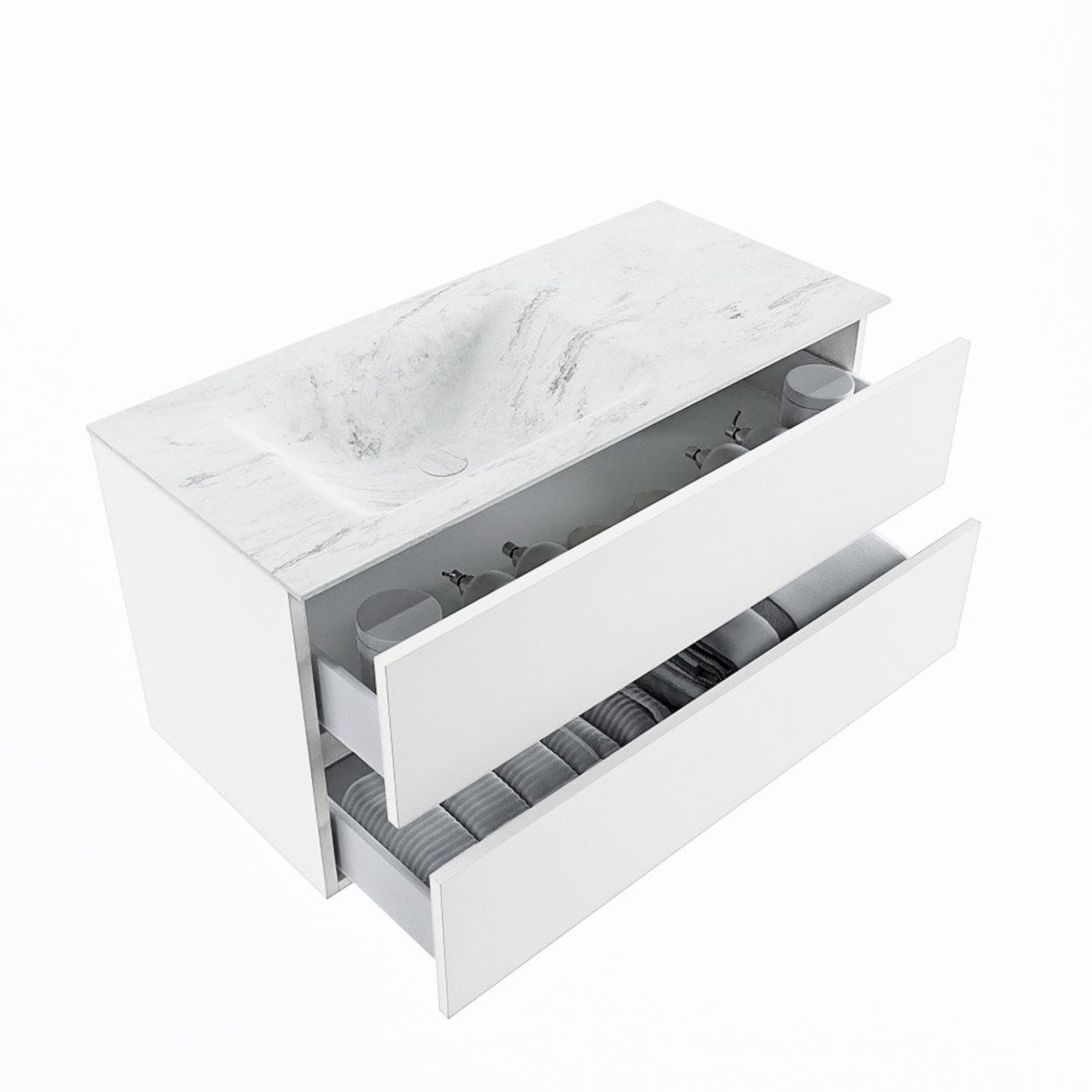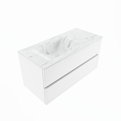 MONDIAZ VICA-DLUX Badkamermeubelset - 100cm - onderkast talc - 2 lades - inbouw wastafel cloud links - zonder kraangaten - 60cm hoge versie - opalo