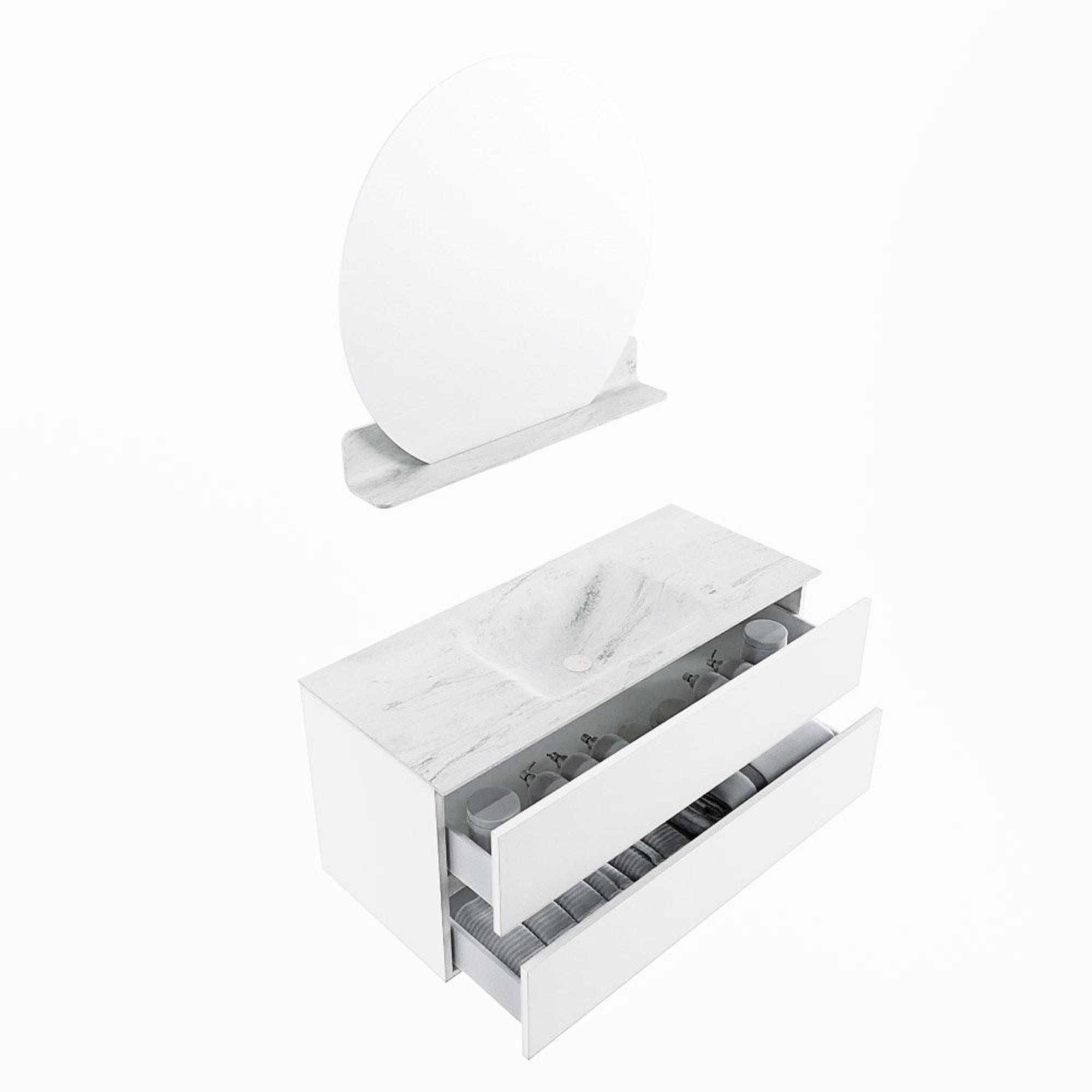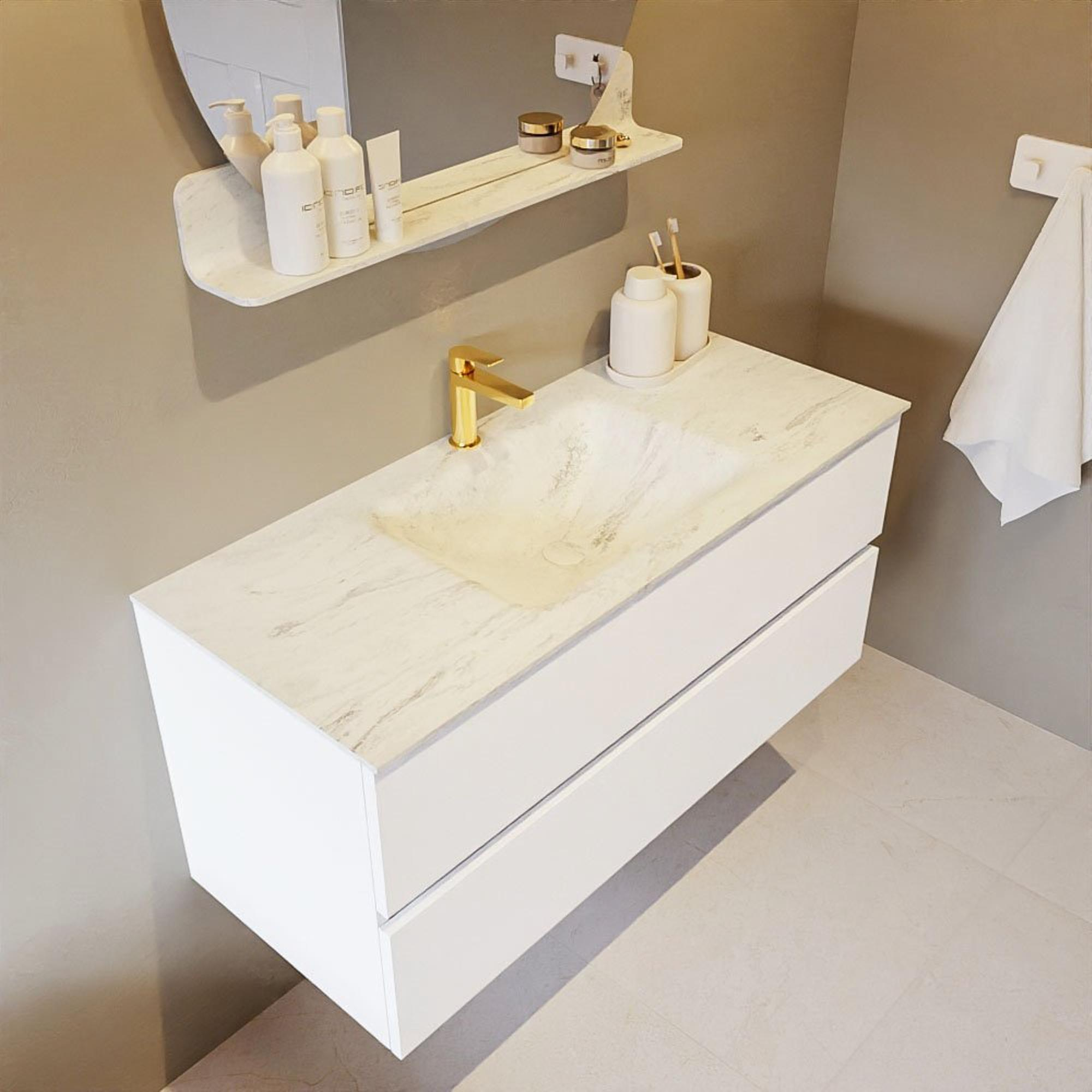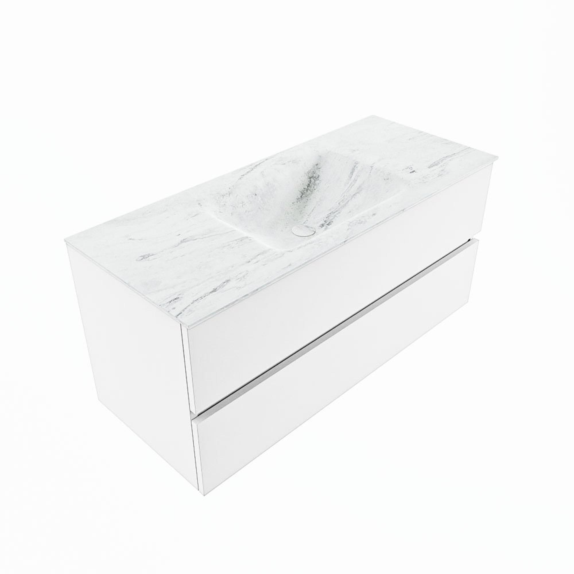 MONDIAZ VICA-DLUX Badkamermeubelset - 110cm - onderkast talc - 2 lades - inbouw wastafel cloud midden - 1 kraangat - 60cm hoge versie - opalo