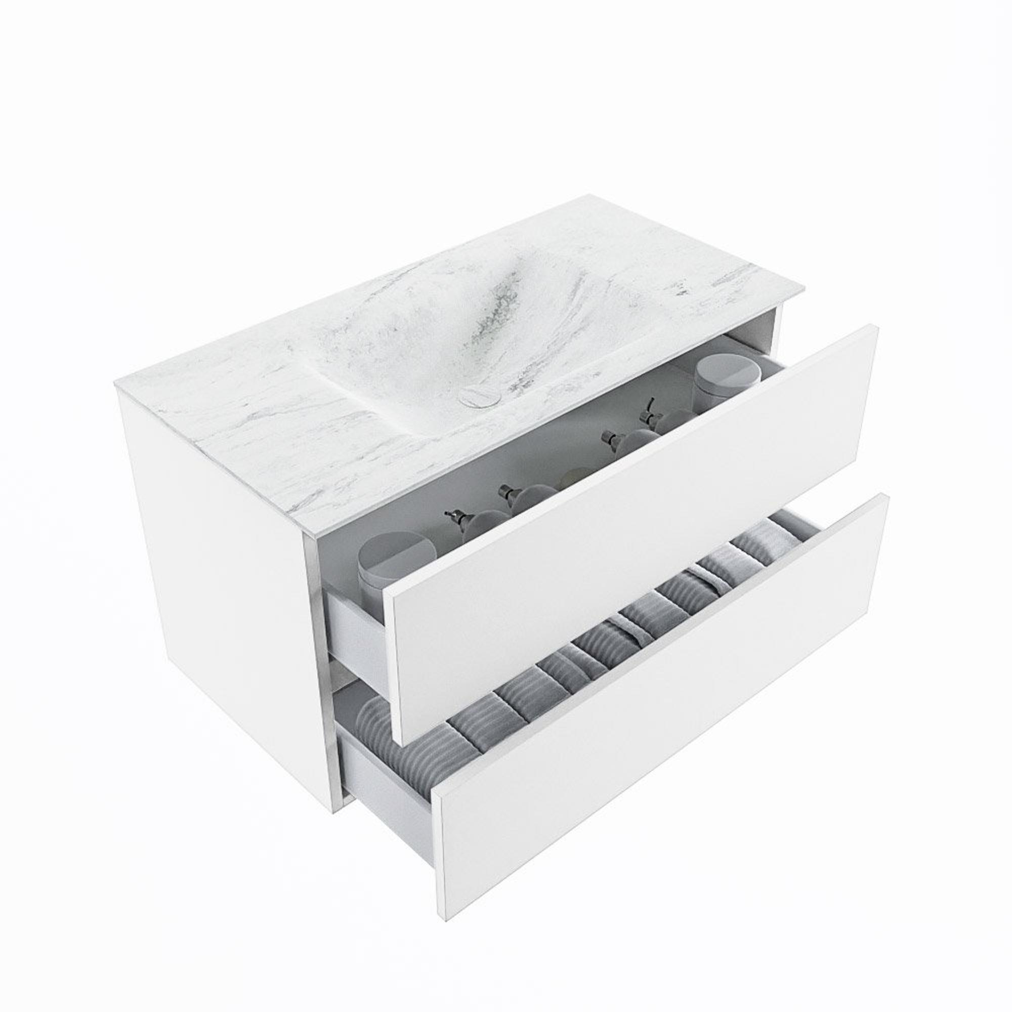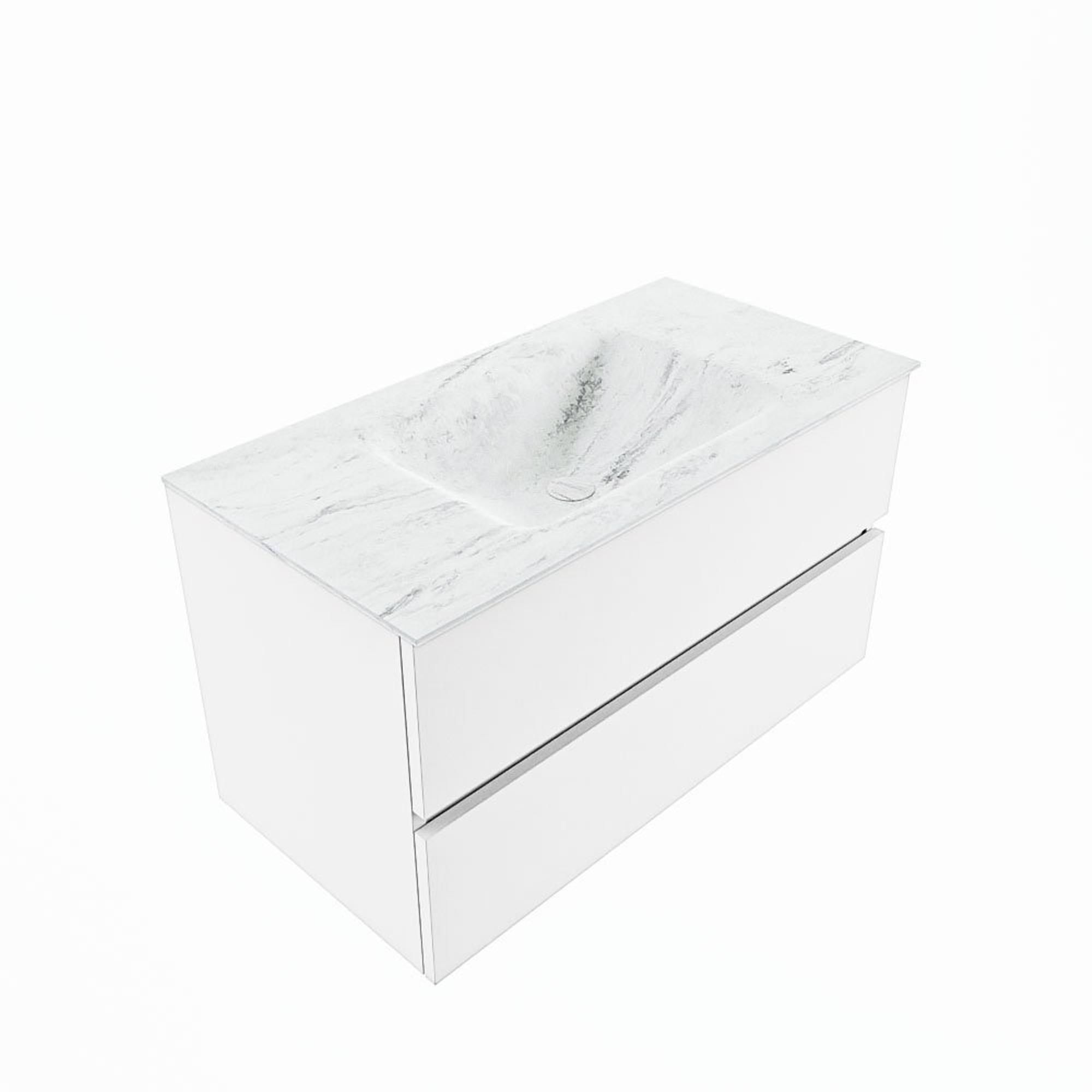 MONDIAZ VICA-DLUX Badkamermeubelset - 90cm - onderkast talc - 2 lades - inbouw wastafel cloud midden - 1 kraangat - 60cm hoge versie - opalo