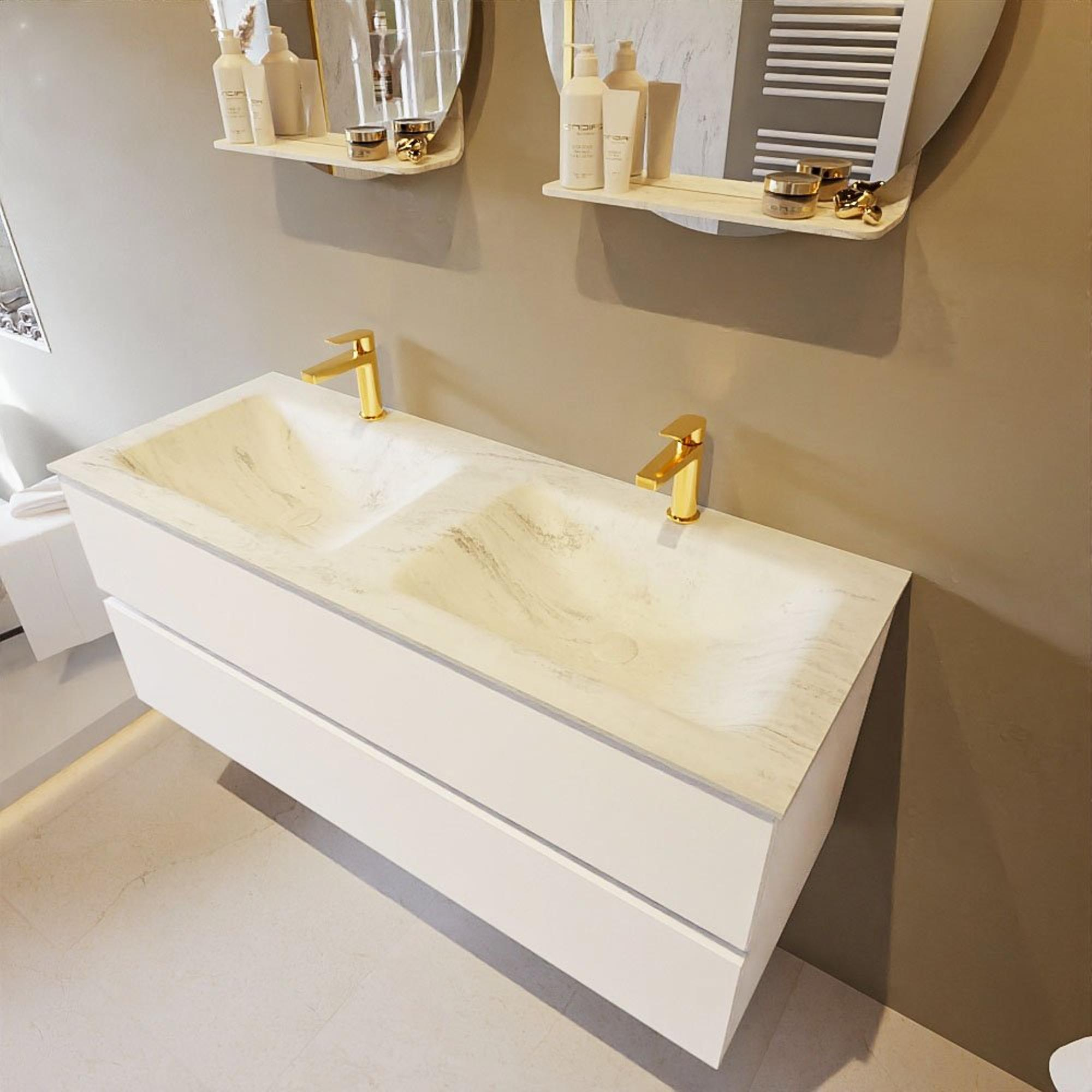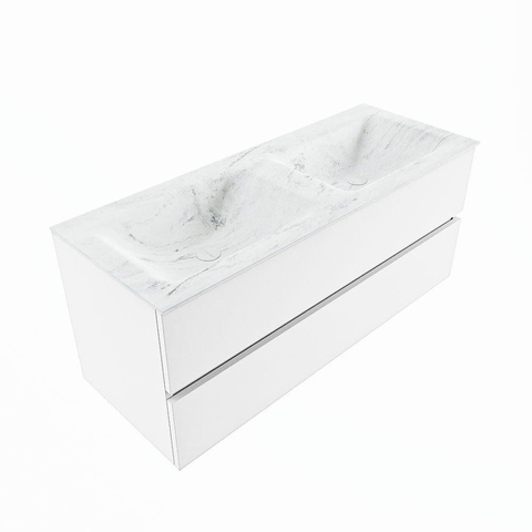 MONDIAZ VICA-DLUX Badkamermeubelset - 120cm - onderkast talc - 2 lades - inbouw wastafel cloud dubbel - 2 kraangaten - 60cm hoge versie - opalo