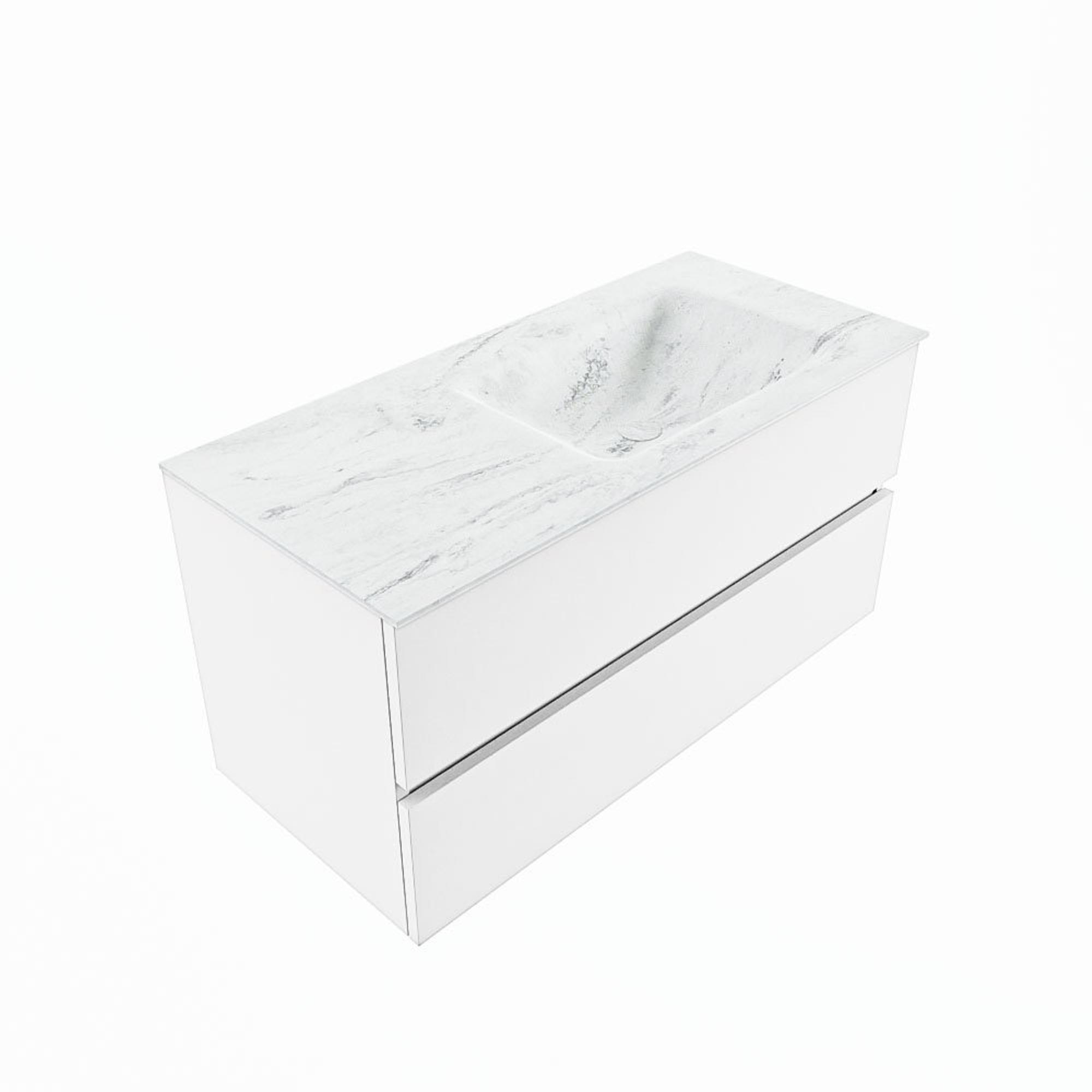 MONDIAZ VICA-DLUX Badkamermeubelset - 100cm - onderkast talc - 2 lades - inbouw wastafel cloud rechts - zonder kraangaten - 60cm hoge versie - opalo