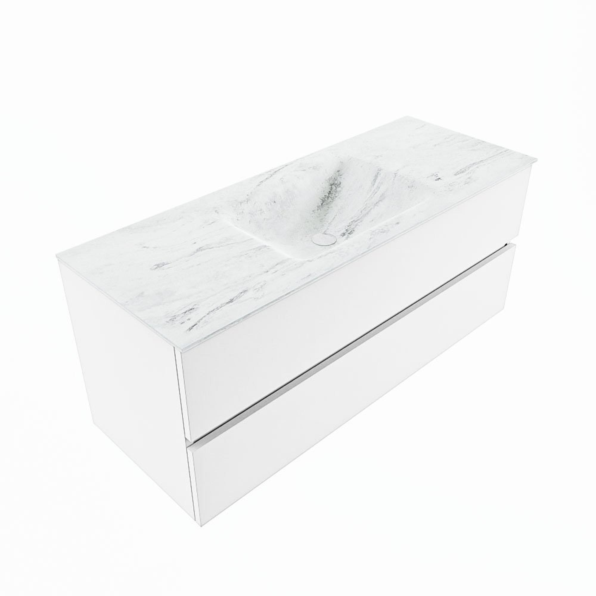 MONDIAZ VICA-DLUX Badkamermeubelset - 120cm - onderkast talc - 2 lades - inbouw wastafel cloud midden - zonder kraangaten - 60cm hoge versie - opalo