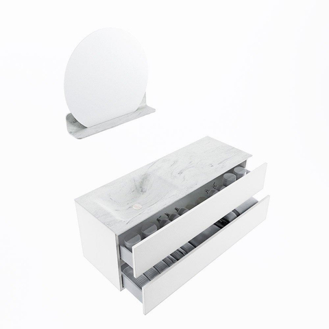 MONDIAZ VICA-DLUX Badkamermeubelset - 130cm - onderkast talc - 2 lades - inbouw wastafel cloud links - zonder kraangaten - 60cm hoge versie - opalo