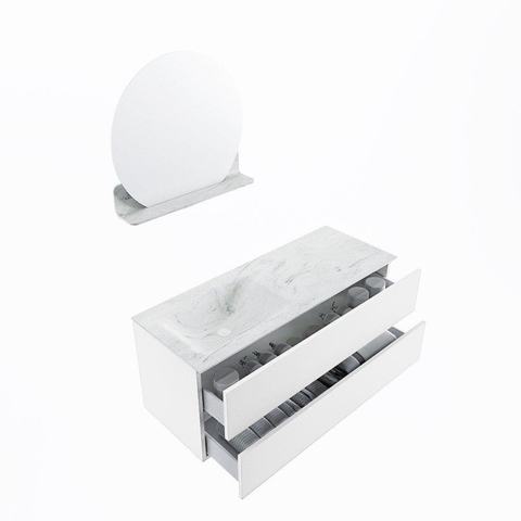 MONDIAZ VICA-DLUX Badkamermeubelset - 120cm - onderkast talc - 2 lades - inbouw wastafel cloud links - 1 kraangat - 60cm hoge versie - opalo