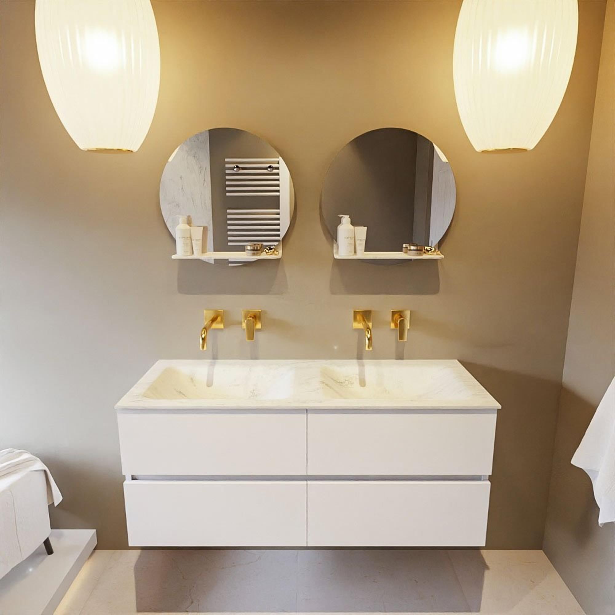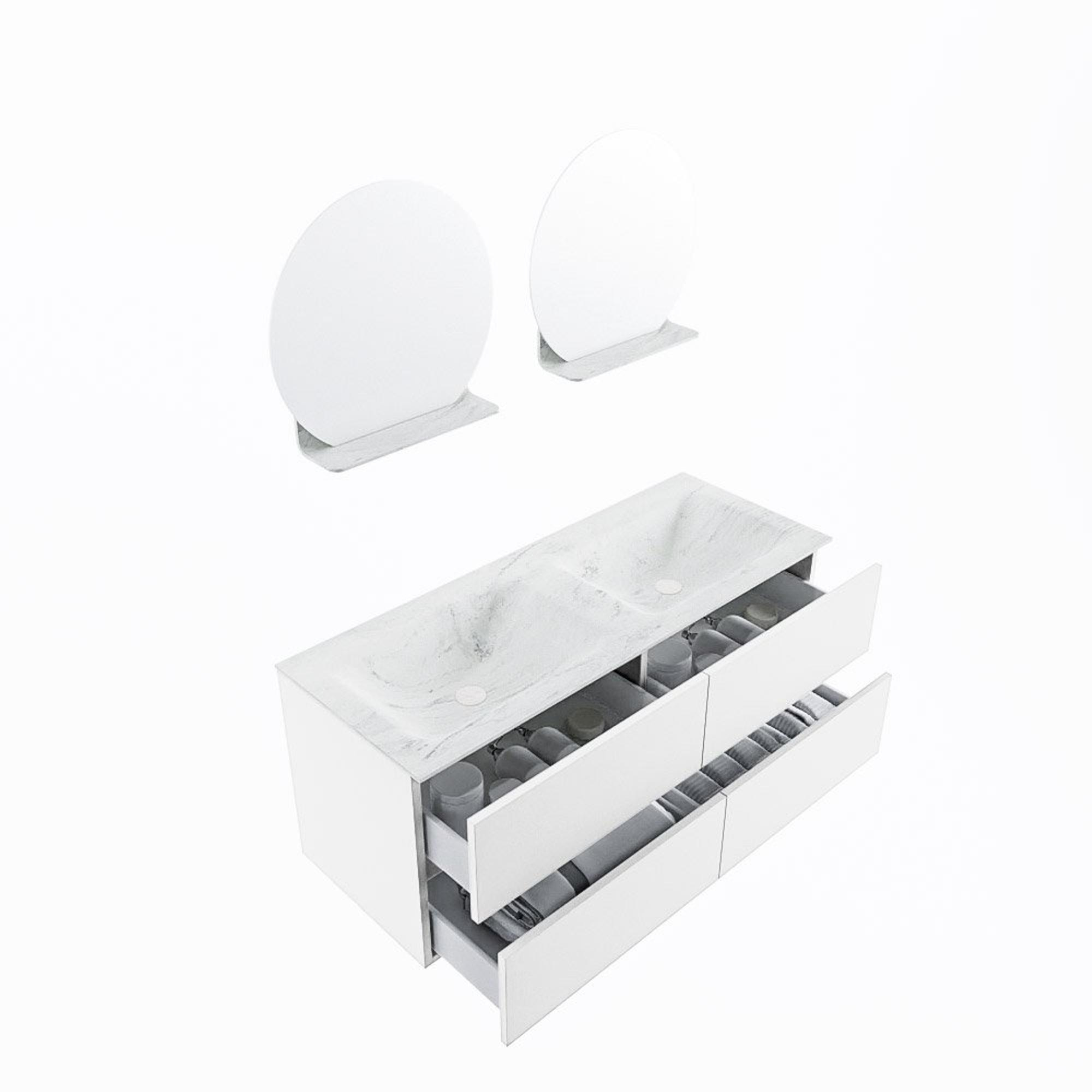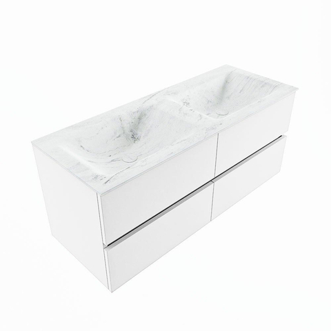 MONDIAZ VICA-DLUX Badkamermeubelset - 120cm - onderkast talc - 4 lades - inbouw wastafel cloud dubbel - zonder kraangaten - 60cm hoge versie - opalo