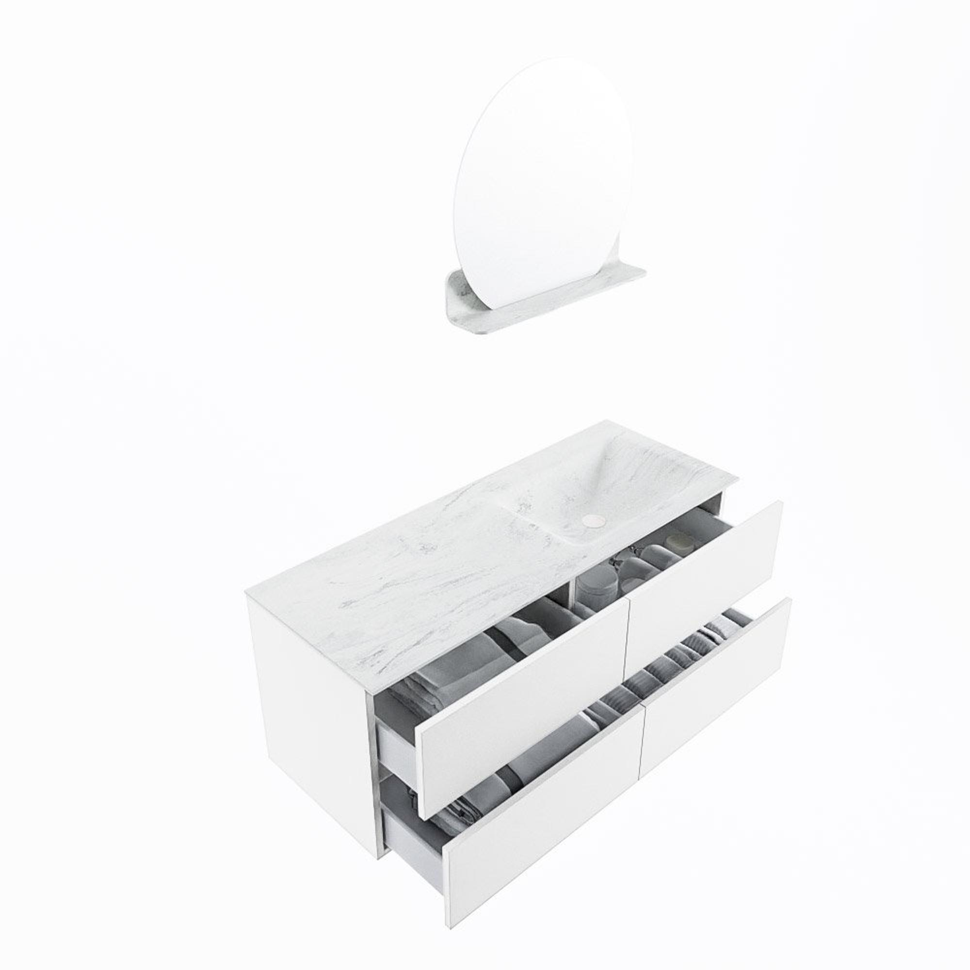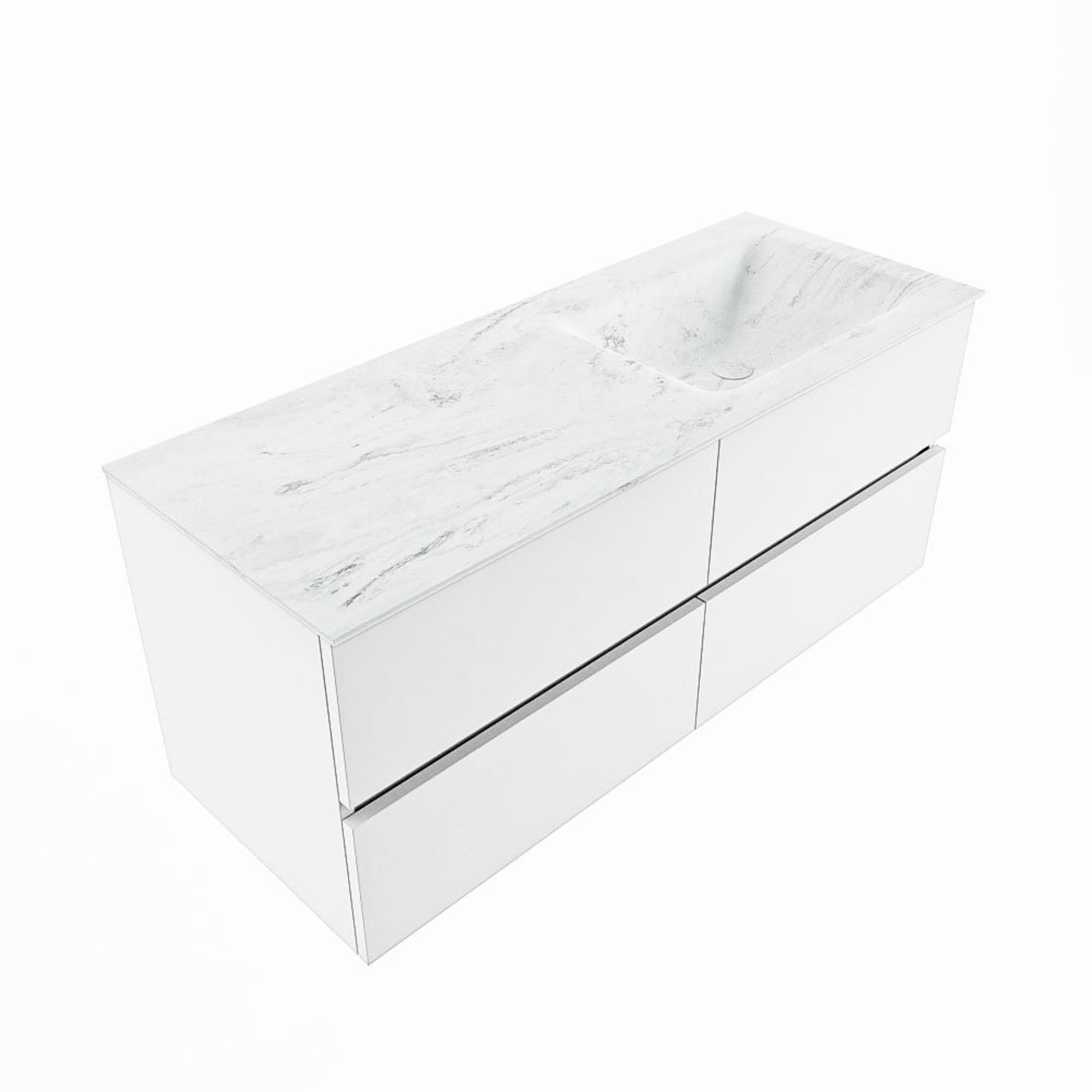 MONDIAZ VICA-DLUX Badkamermeubelset - 120cm - onderkast talc - 4 lades - inbouw wastafel cloud rechts - 1 kraangat - 60cm hoge versie - opalo