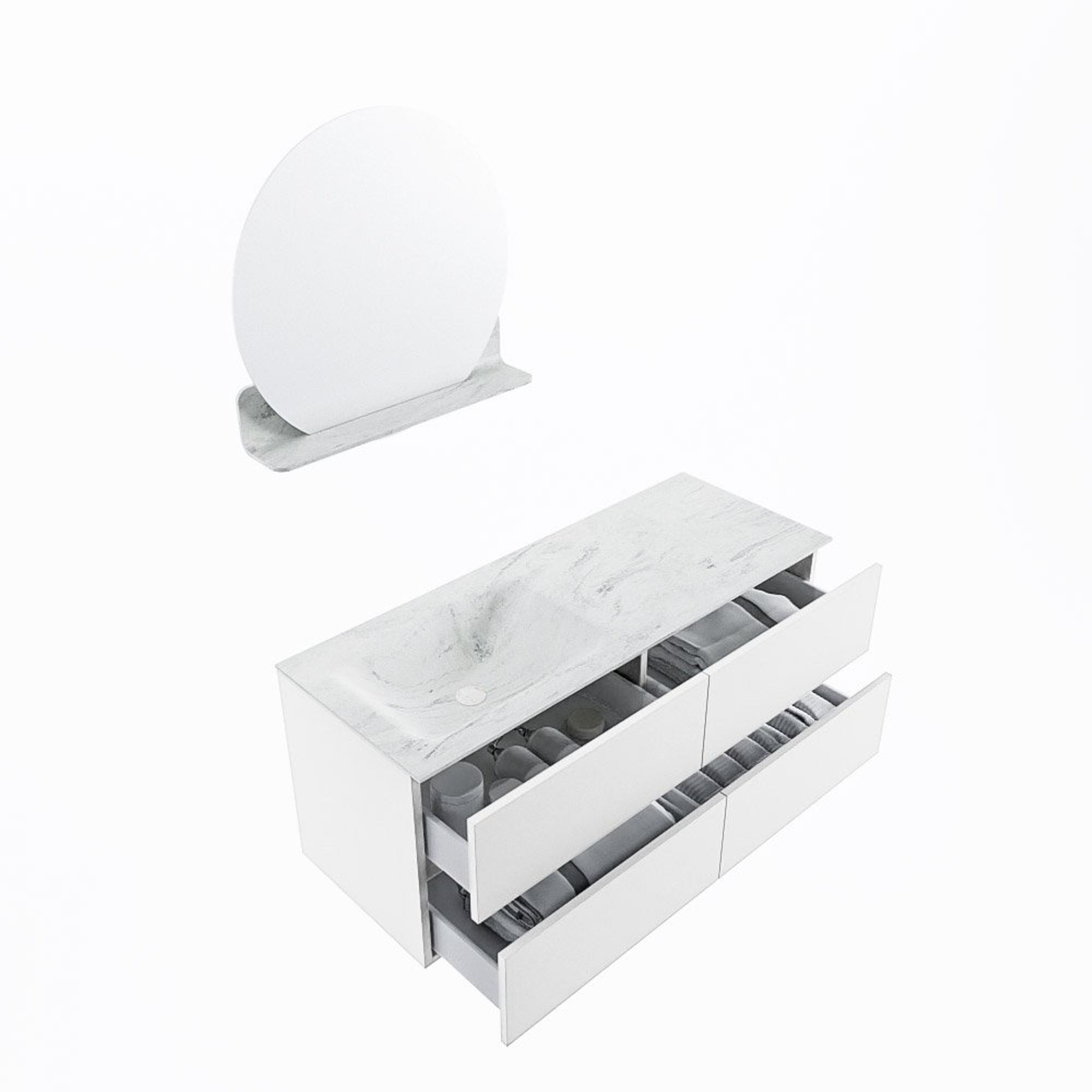 MONDIAZ VICA-DLUX Badkamermeubelset - 120cm - onderkast talc - 4 lades - inbouw wastafel cloud links - 1 kraangat - 60cm hoge versie - opalo