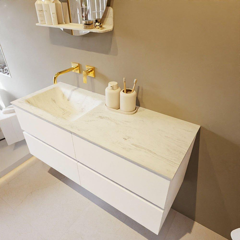 MONDIAZ VICA-DLUX Badkamermeubelset - 120cm - onderkast talc - 4 lades - inbouw wastafel cloud links - zonder kraangaten - 60cm hoge versie - opalo