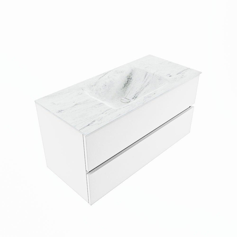 MONDIAZ VICA-DLUX Badkamermeubelset - 100cm - onderkast talc - 2 lades - inbouw wastafel cloud midden - zonder kraangaten - 60cm hoge versie - opalo
