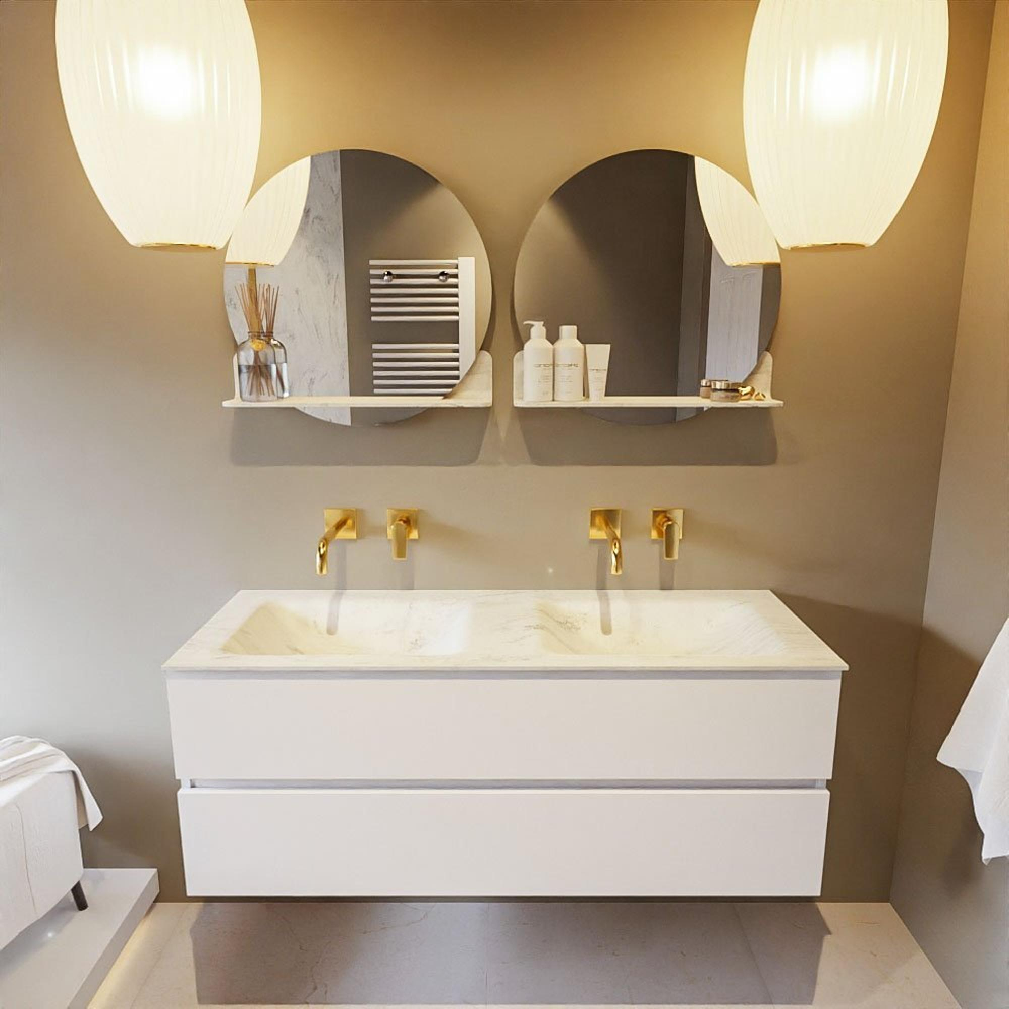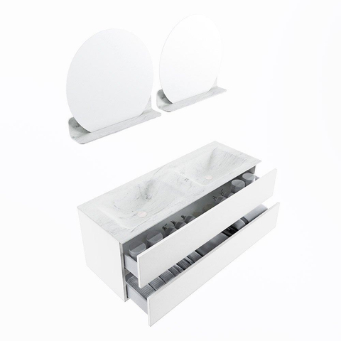 MONDIAZ VICA-DLUX Badkamermeubelset - 130cm - onderkast talc - 2 lades - inbouw wastafel cloud dubbel - zonder kraangaten - 60cm hoge versie - opalo