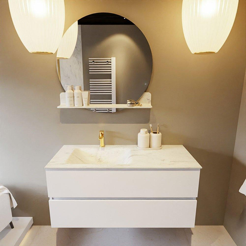 MONDIAZ VICA-DLUX Badkamermeubelset - 110cm - onderkast talc - 2 lades - inbouw wastafel cloud links - 1 kraangat - 60cm hoge versie - opalo