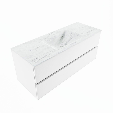 MONDIAZ VICA-DLUX Badkamermeubelset - 120cm - onderkast talc - 2 lades - inbouw wastafel cloud midden - 1 kraangat - 60cm hoge versie - opalo