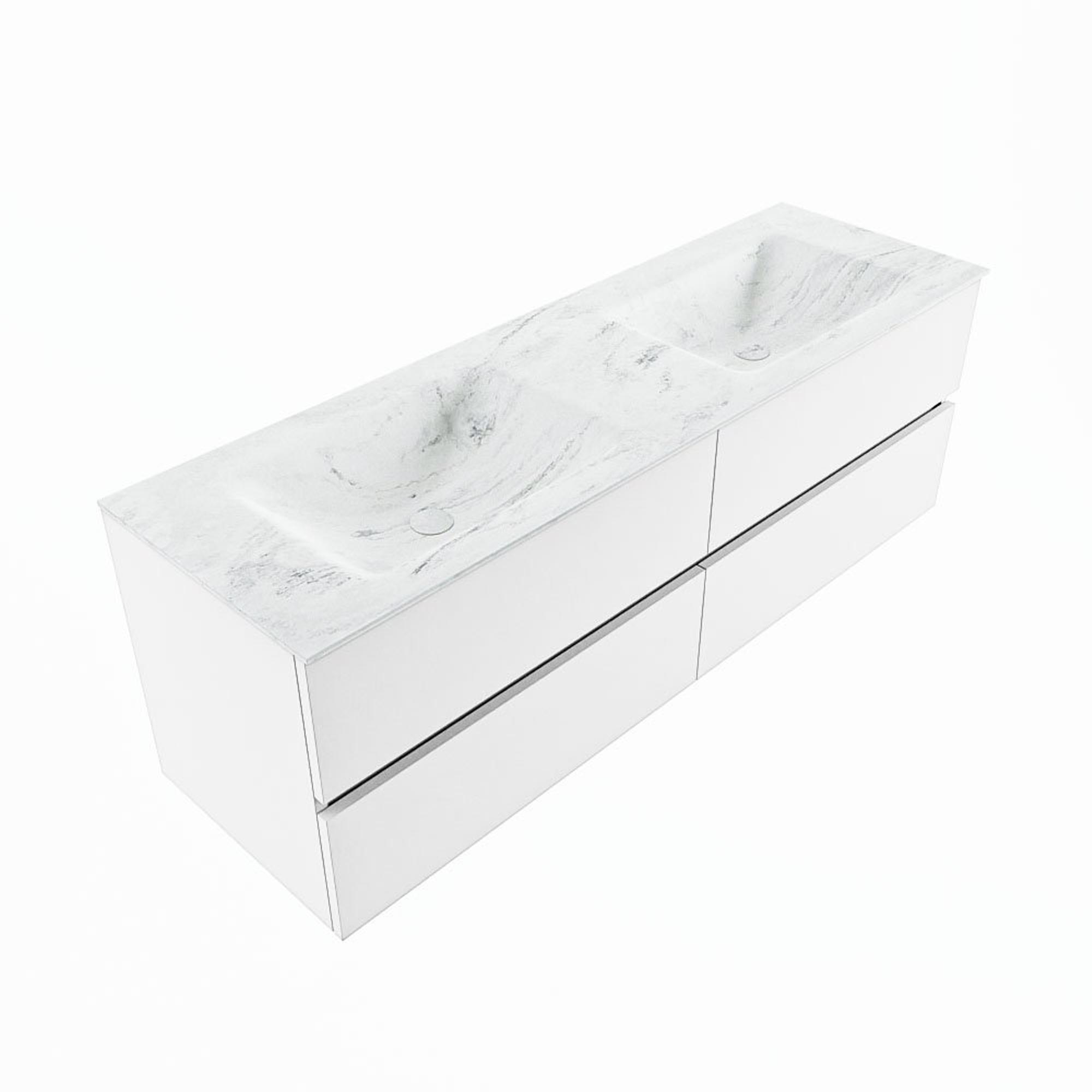 MONDIAZ VICA-DLUX Badkamermeubelset - 150cm - onderkast talc - 4 lades - inbouw wastafel cloud dubbel - 2 kraangaten - 60cm hoge versie - opalo