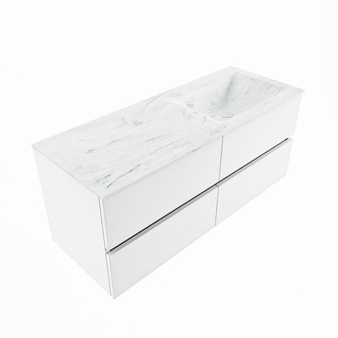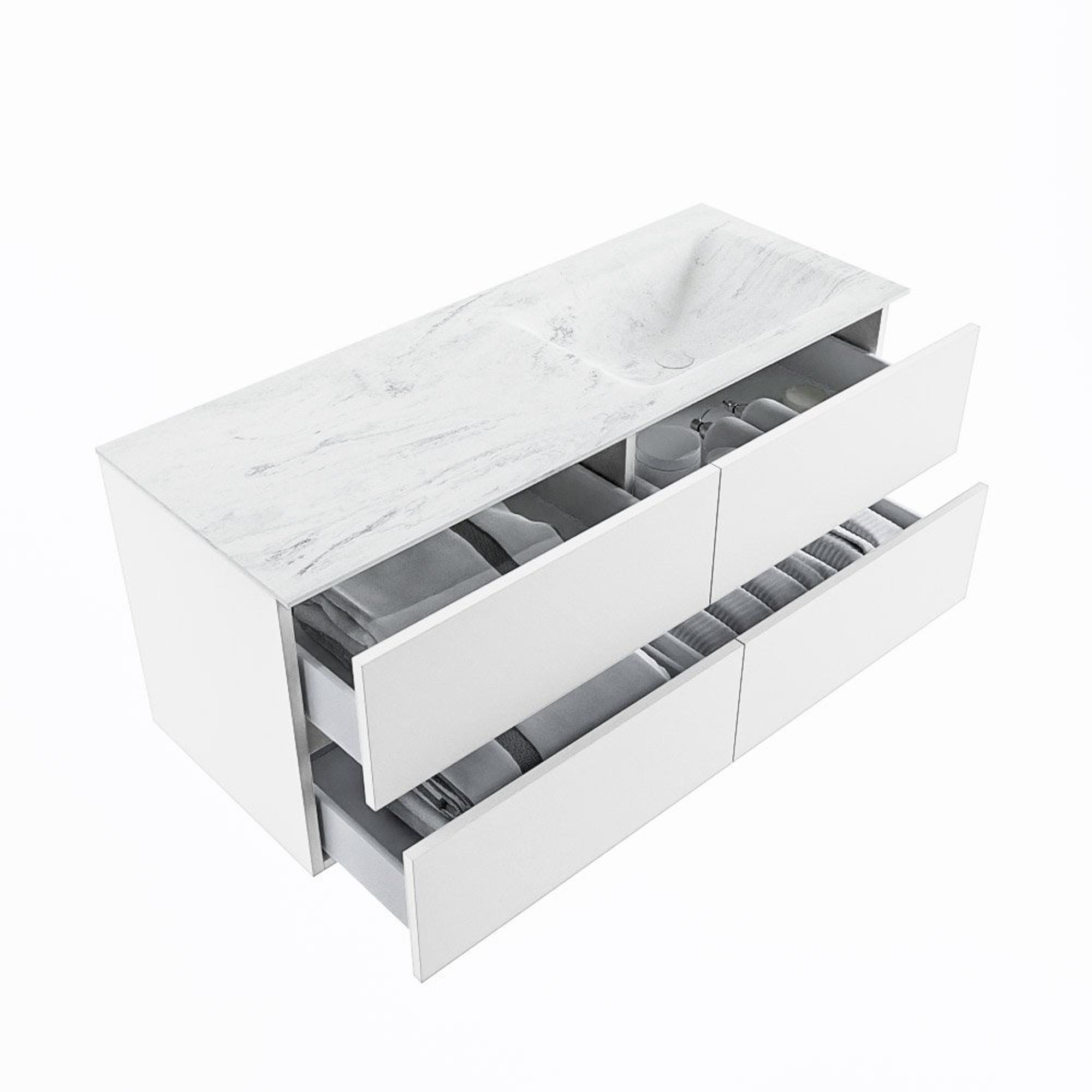 MONDIAZ VICA-DLUX Badkamermeubelset - 120cm - onderkast talc - 4 lades - inbouw wastafel cloud rechts - zonder kraangaten - 60cm hoge versie - opalo