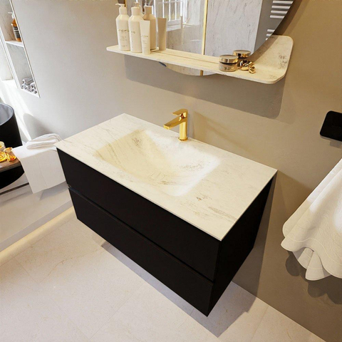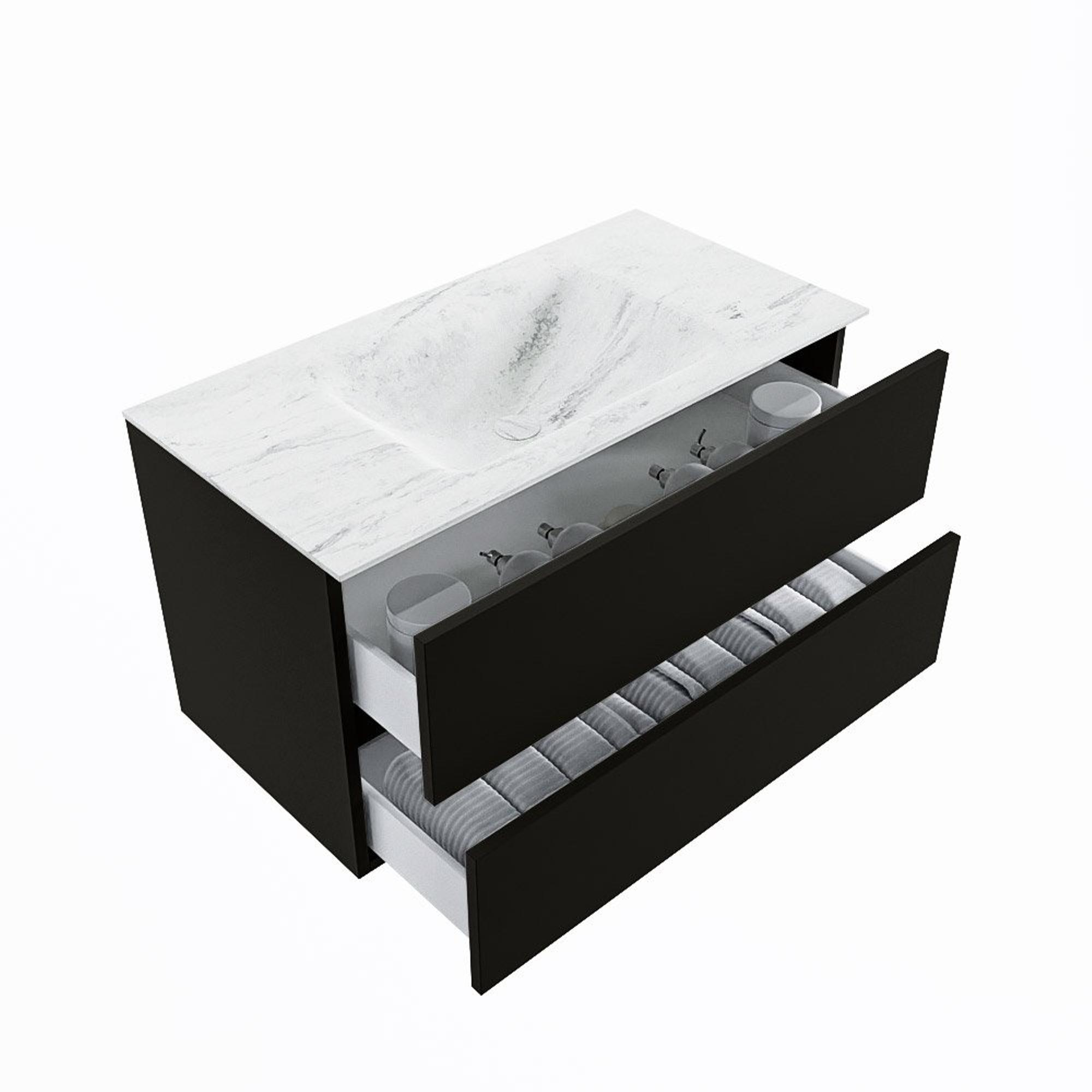 MONDIAZ VICA-DLUX Badkamermeubelset - 90cm - onderkast urban- 2 lades - inbouw wastafel cloud midden - 1 kraangat - 60cm hoge versie - opalo