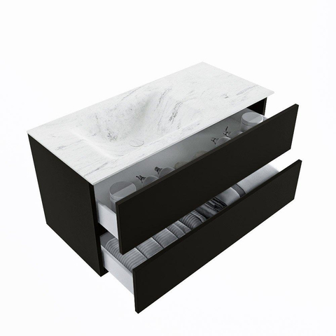 MONDIAZ VICA-DLUX Badkamermeubelset - 100cm - onderkast urban- 2 lades - inbouw wastafel cloud links - zonder kraangaten - 60cm hoge versie - opalo