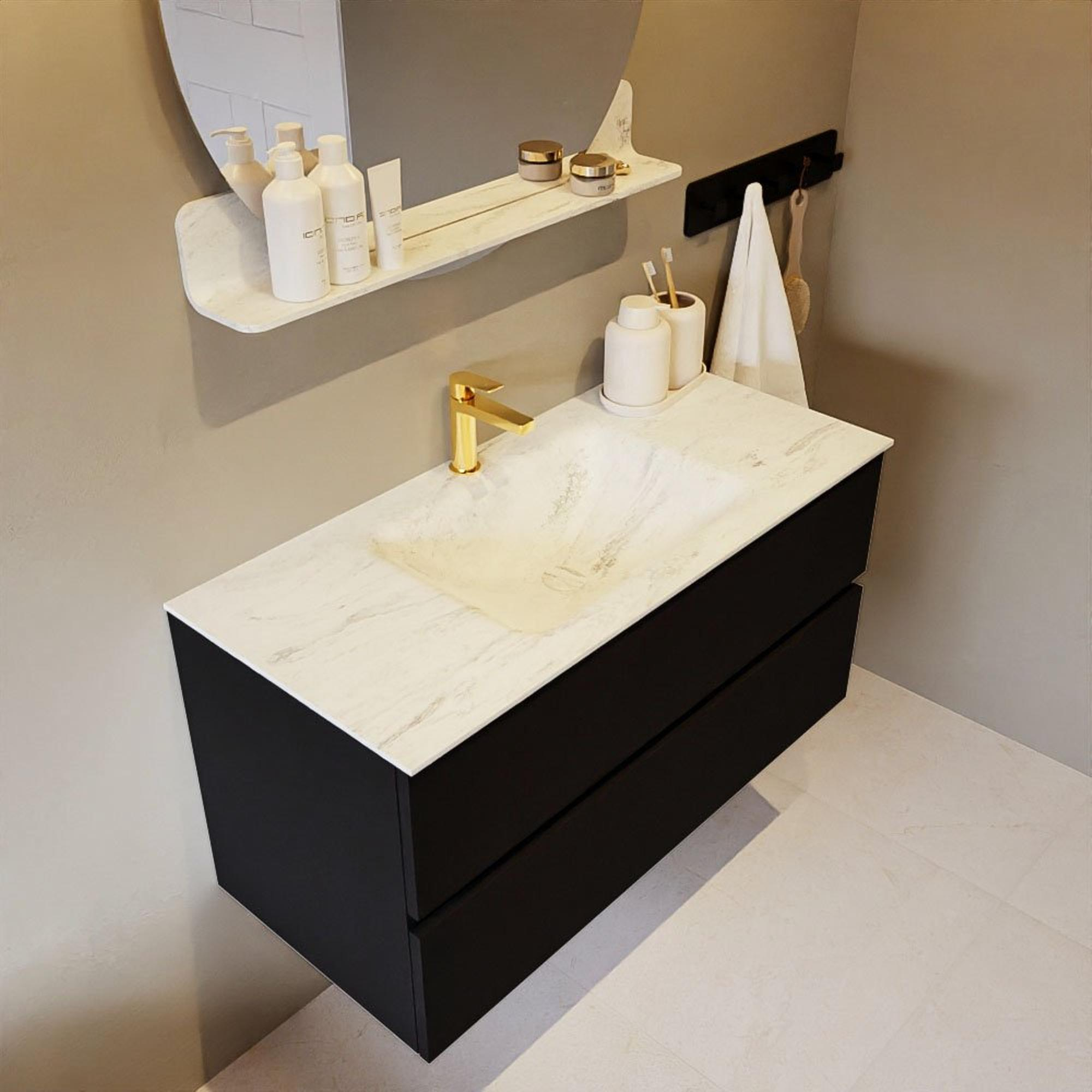 MONDIAZ VICA-DLUX Badkamermeubelset - 100cm - onderkast urban- 2 lades - inbouw wastafel cloud midden - 1 kraangat - 60cm hoge versie - opalo