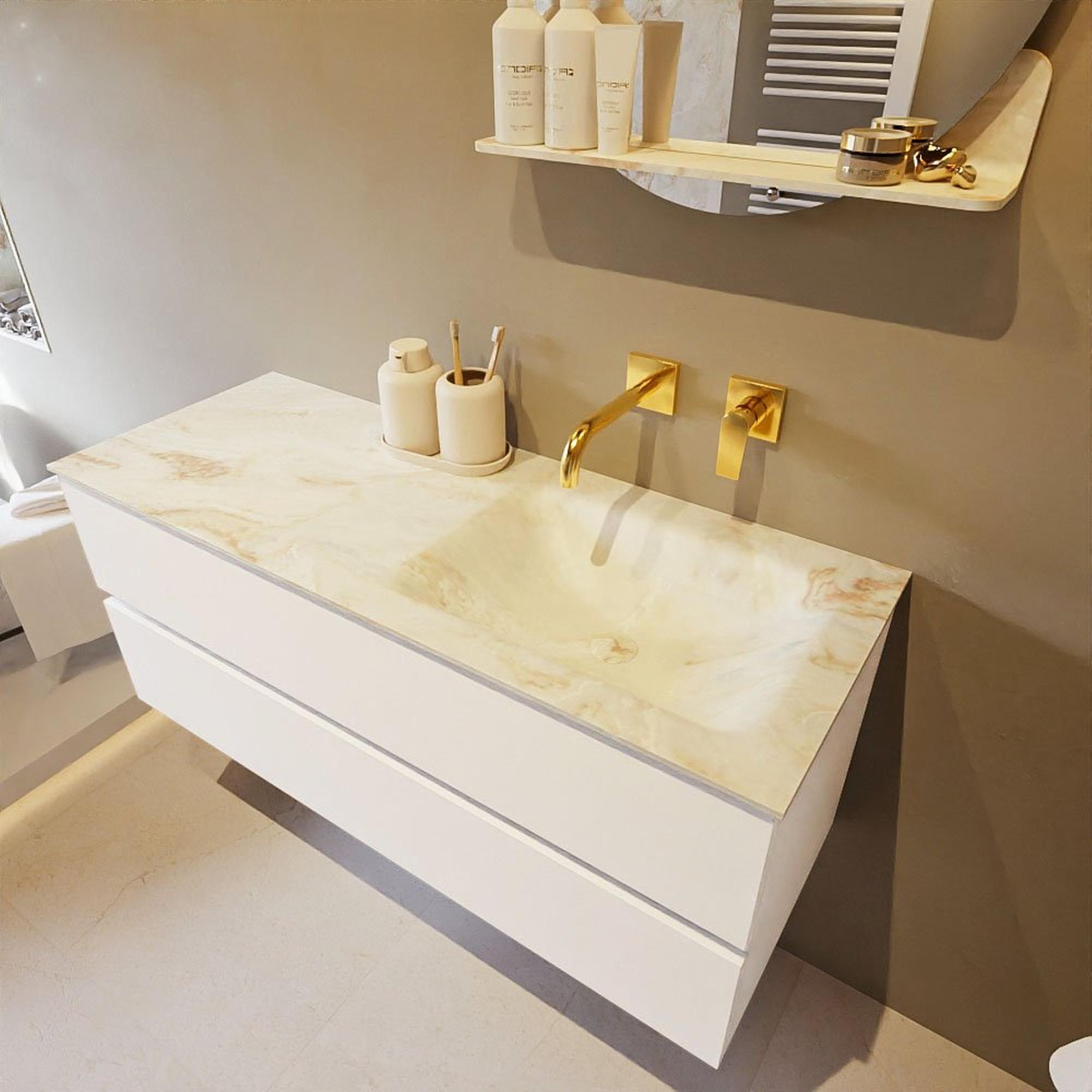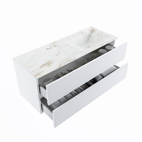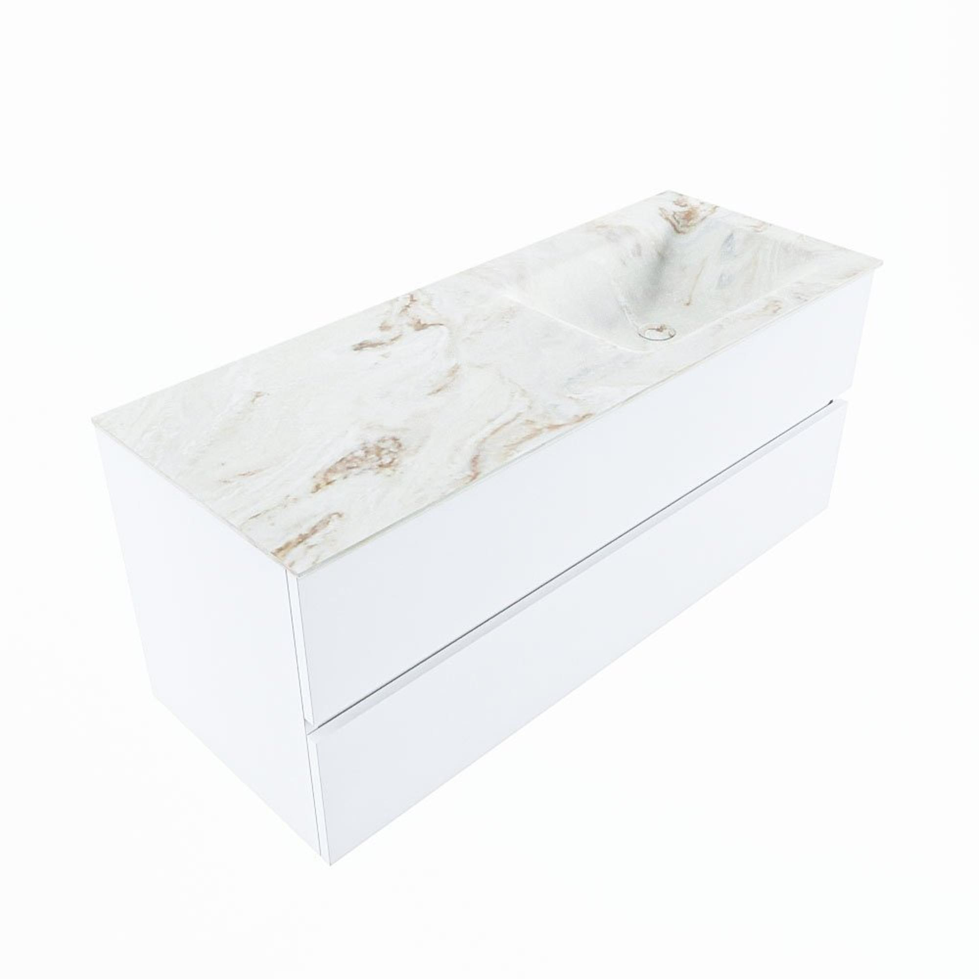 MONDIAZ VICA-DLUX Badkamermeubelset - 120cm - onderkast talc - 2 lades - inbouw wastafel cloud rechts - zonder kraangaten - 60cm hoge versie - frape
