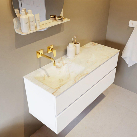 MONDIAZ VICA-DLUX Badkamermeubelset - 120cm - onderkast talc - 2 lades - inbouw wastafel cloud links - zonder kraangaten - 60cm hoge versie - frape
