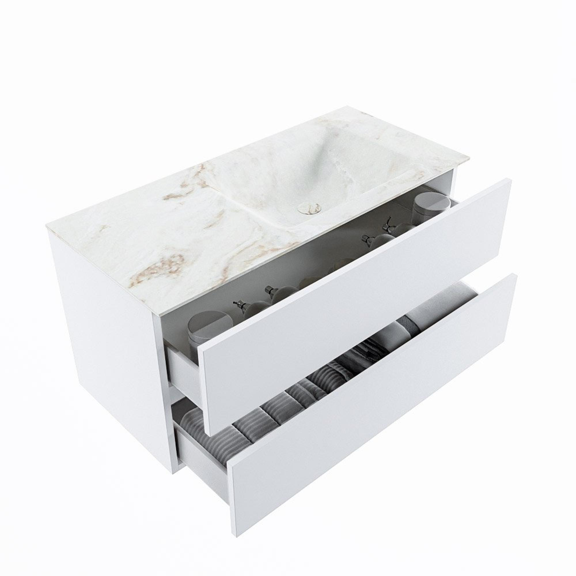 MONDIAZ VICA-DLUX Badkamermeubelset - 100cm - onderkast talc - 2 lades - inbouw wastafel cloud rechts - 1 kraangat - 60cm hoge versie - frape