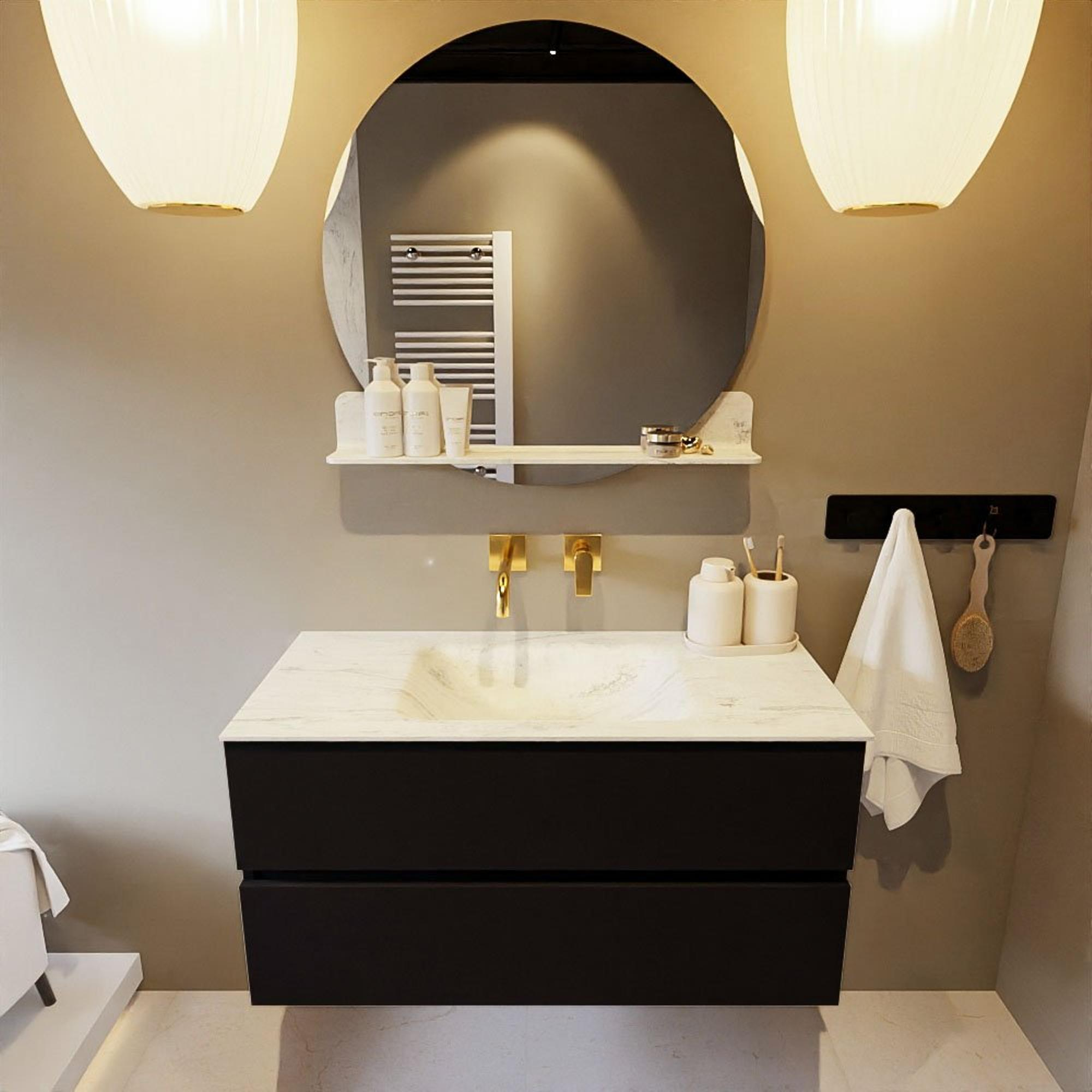 MONDIAZ VICA-DLUX Badkamermeubelset - 100cm - onderkast urban- 2 lades - inbouw wastafel cloud midden - zonder kraangaten - 60cm hoge versie - opalo