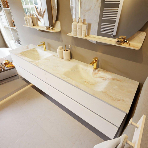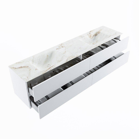 MONDIAZ VICA-DLUX Badkamermeubelset - 200cm - onderkast talc - 4 lades - inbouw wastafel cloud dubbel - 2 kraangaten - 60cm hoge versie - frape