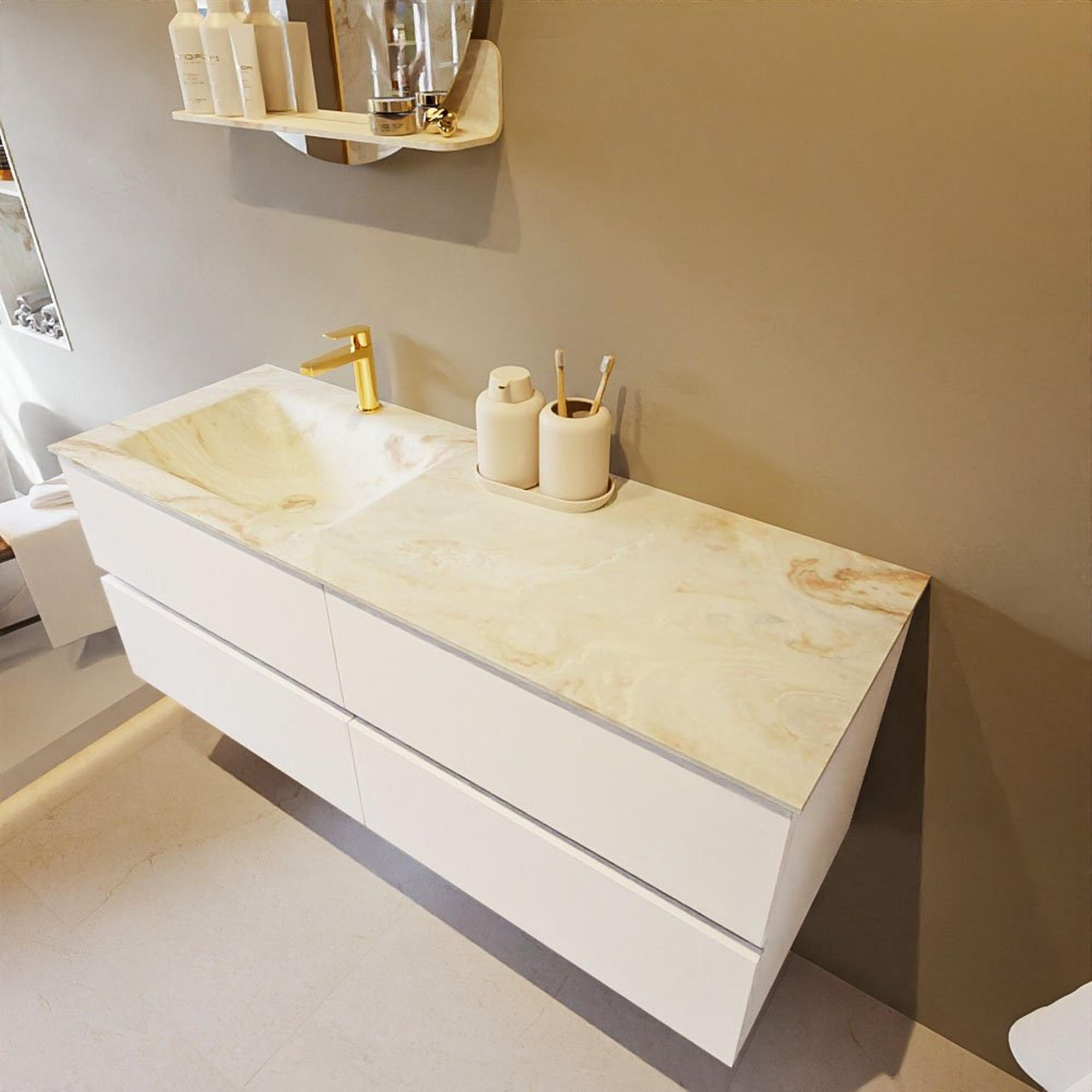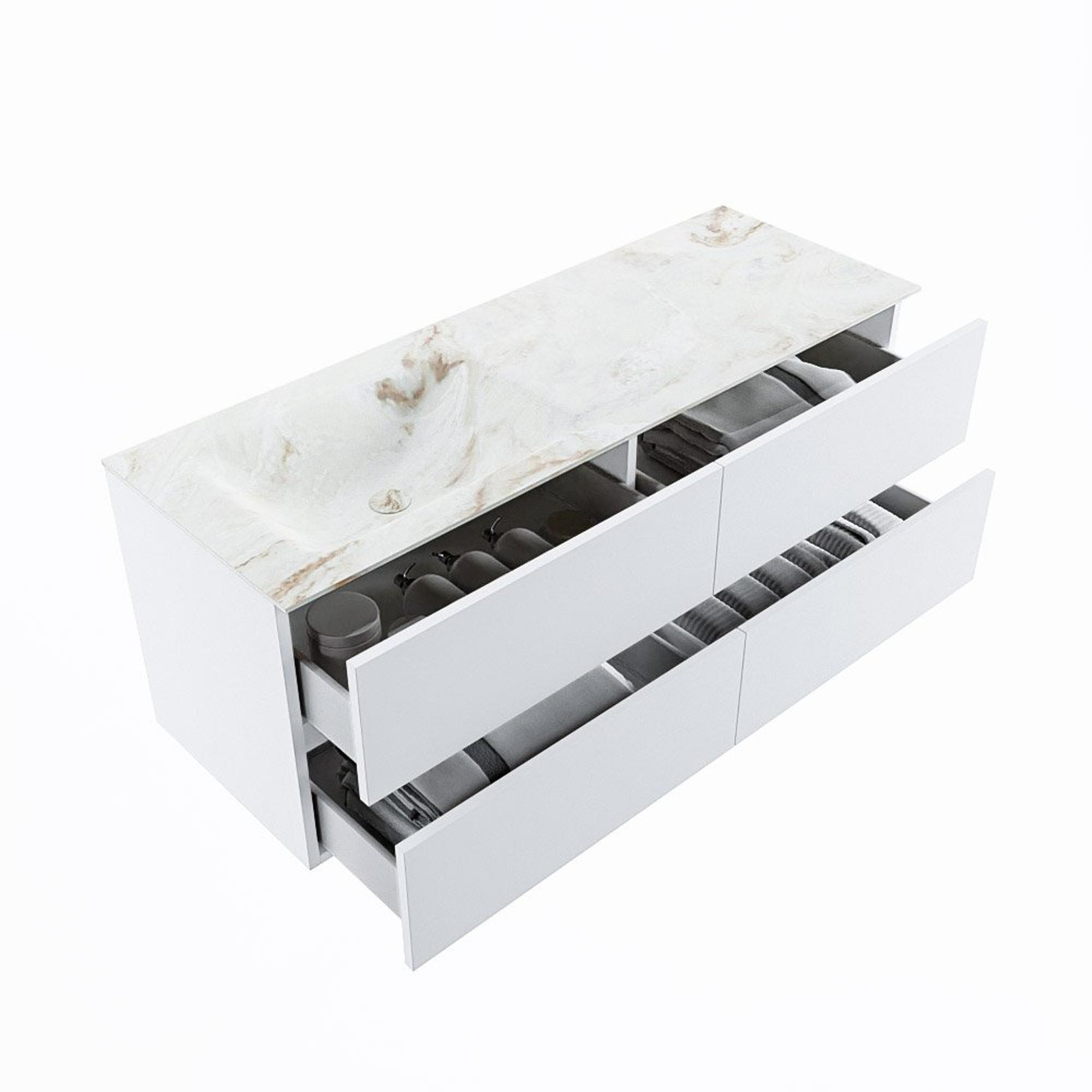 MONDIAZ VICA-DLUX Badkamermeubelset - 130cm - onderkast talc - 4 lades - inbouw wastafel cloud links - 1 kraangat - 60cm hoge versie - frape