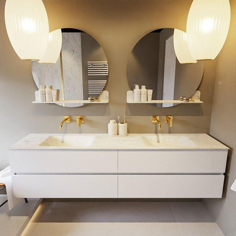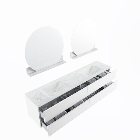 MONDIAZ VICA-DLUX Badkamermeubelset - 200cm - onderkast talc - 4 lades - inbouw wastafel cloud dubbel - zonder kraangaten - 60cm hoge versie - opalo